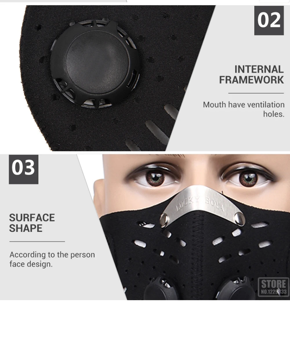 6.это респиратор подходит для всех видов активного отдыха. Такие, как: горные велосипеды, Бег, Верховая езда, спорт, Moto-X, Катание на лыжах, скорость ходьбы, взбираться, Велоспорт, Прогулки, мотоспорту и т.д. Также относится к: Выхлоп, вирусный грипп, выбросы промышленных, аллергии пыли, PM2. 7.For развернутом производительности, маска должна быть запечатан должным образом вокруг носа и рта, так что все вдыхаемый воздух может проходить через фильтр.