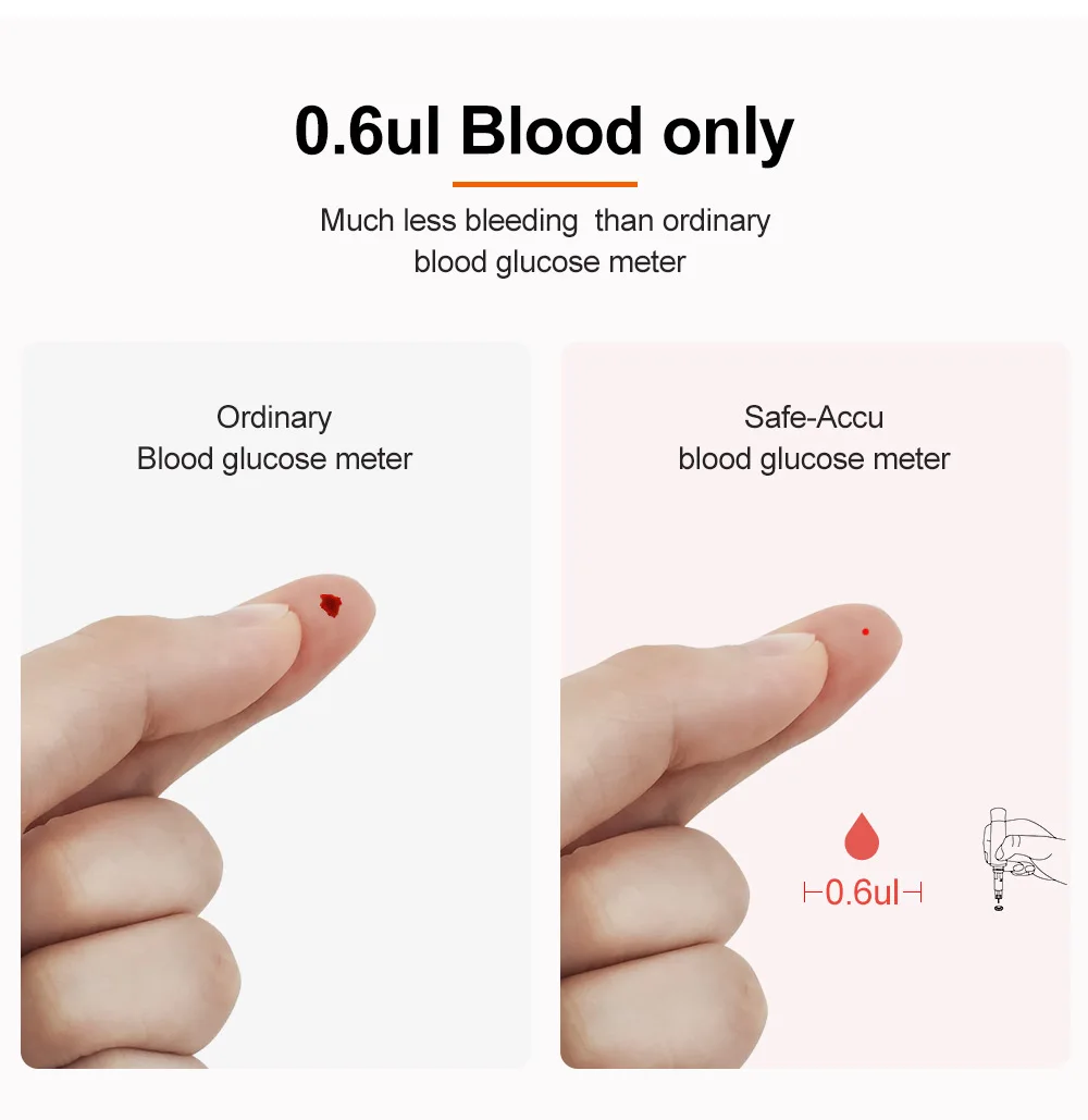* Меньше боли, 0,6 ul микро глюкозы в крови.