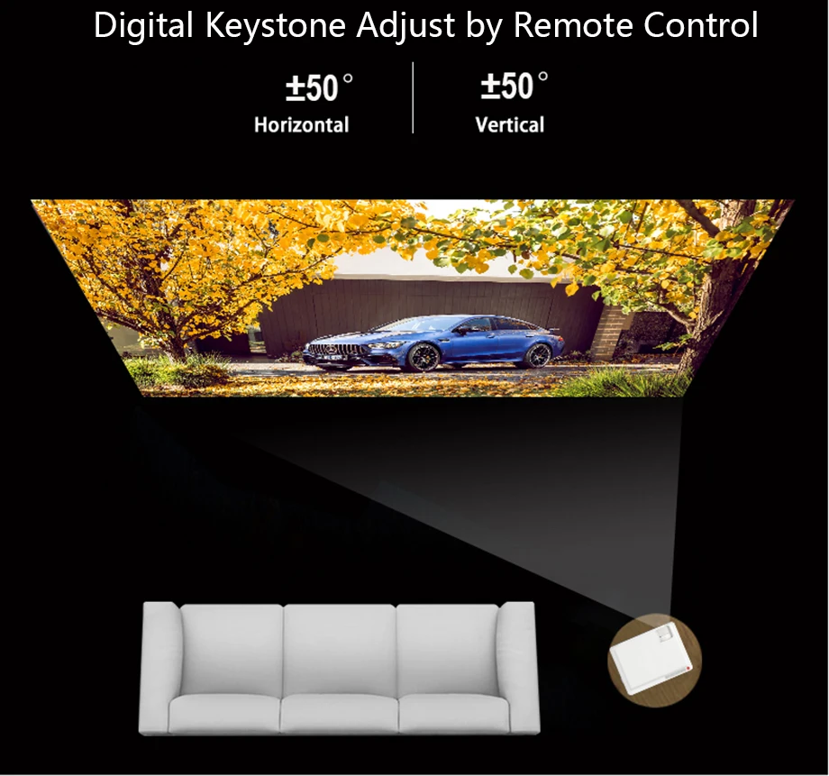 3.Поддержка 4D цифровой вертикальное и горизонтальное трапецеидального искажения с помощью пульта дистанционного управления.