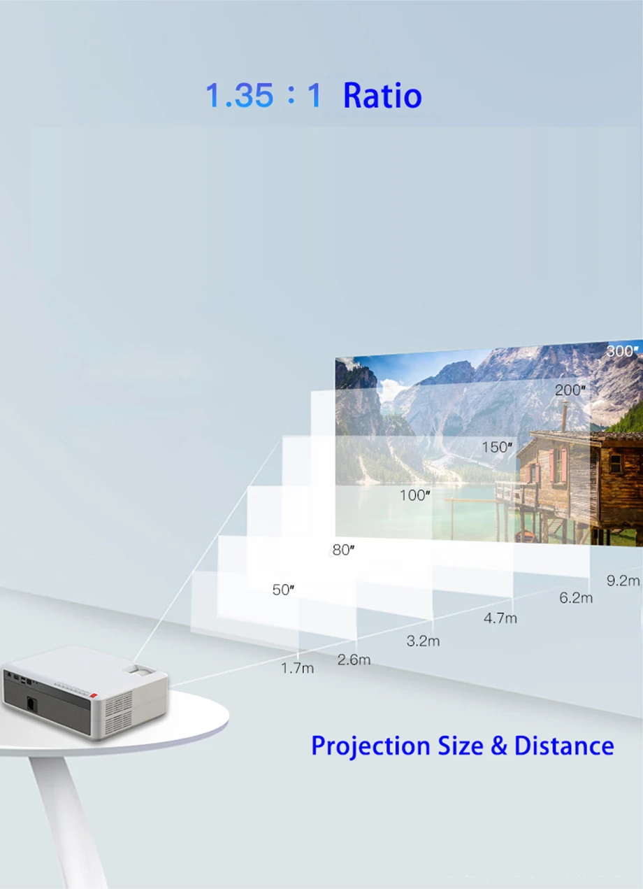 1.Максимальная поддержка 300 дюймов огромный экран для домашнего кинотеатра: