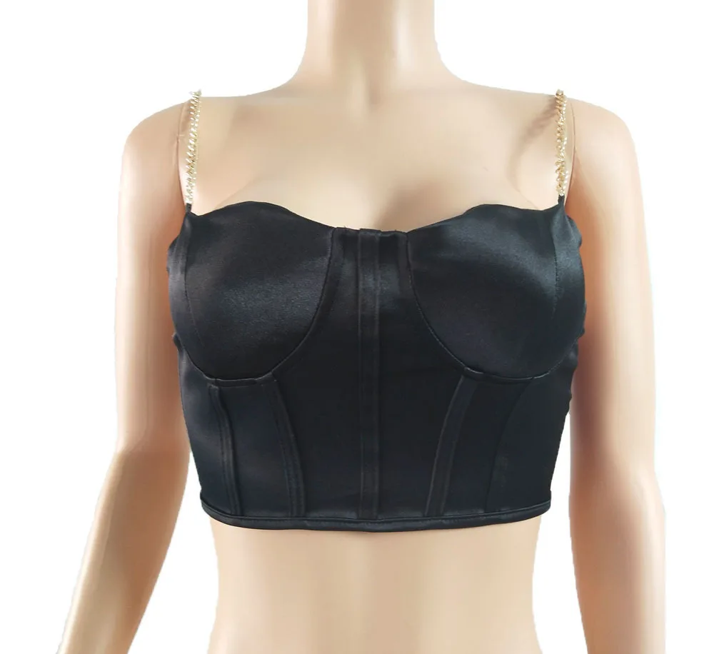 Отзывы о Женский тонкий атласный жилет с лямкой на шее и металлической цепочкой клубный -