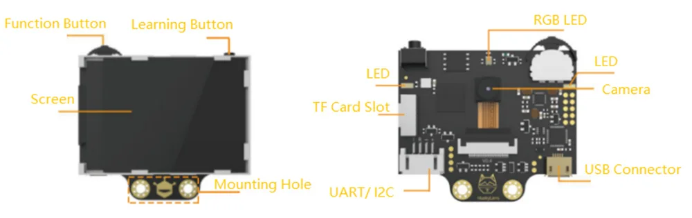 HuskyLens довольно прост в использовании. Вы можете изменить различные алгоритмы, нажав функциональную кнопку. Нажмите кнопку обучения, HuskyLens начинает изучать новые вещи. После этого HuskyLens может их распознать. Кроме того, HuskyLens имеет 2,0-дюймовый IPSэкран. Таким образом, вам не нужно использовать компьютер в настройке параметров. Наслаждайтесь удобством, которое вы приносите, то, что вы видите, это то, что вы получаете!