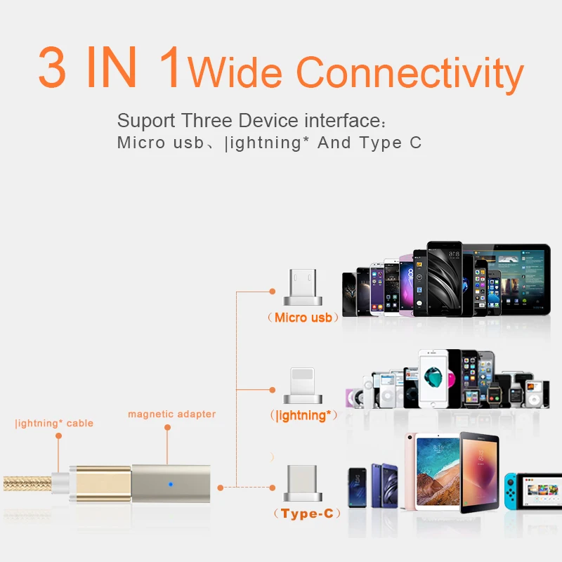 1. Магнитный адаптер, одна головка, три функции, Совместимость с Android, интерфейсом Apple type-c, поддержка зарядки + передачи данных;