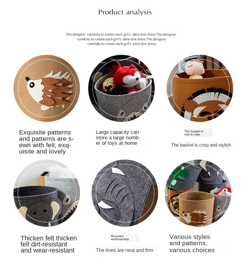 Характеристики: мультяшный дизайн, большая открытая конструкция, складная, большая емкость, износостойкая, не деформируемая, складная, легко переносится, хороший несущий эффект. Материал Премиум-качества: Эта сумка для хранения имеет прочный войлок, прочную основу и мягкую ручку. Очень плотная хлопковая ткань водонепроницаемая, корзина очень хорошая. Большая емкость: достаточно для хранения нескольких вещей, зонтов, подгузников, игрушек, косметики, закусок, офисных принадлежностей и т. д. Загуститель: 4 мм толстый внешний, вертикальный и сформированный, материал из шерстяного войлока, мягкий, безопасный и гигиеничный, вдали от бактерий. Подходящие случаи: прекрасная форма, может украсить дом, очень подходит для семьи и университетских общежитий. Идеально подходит для кемперов, квартиры, гостиничных номеров, кухонь, детских садов, подсобных комнат и торговых центров.