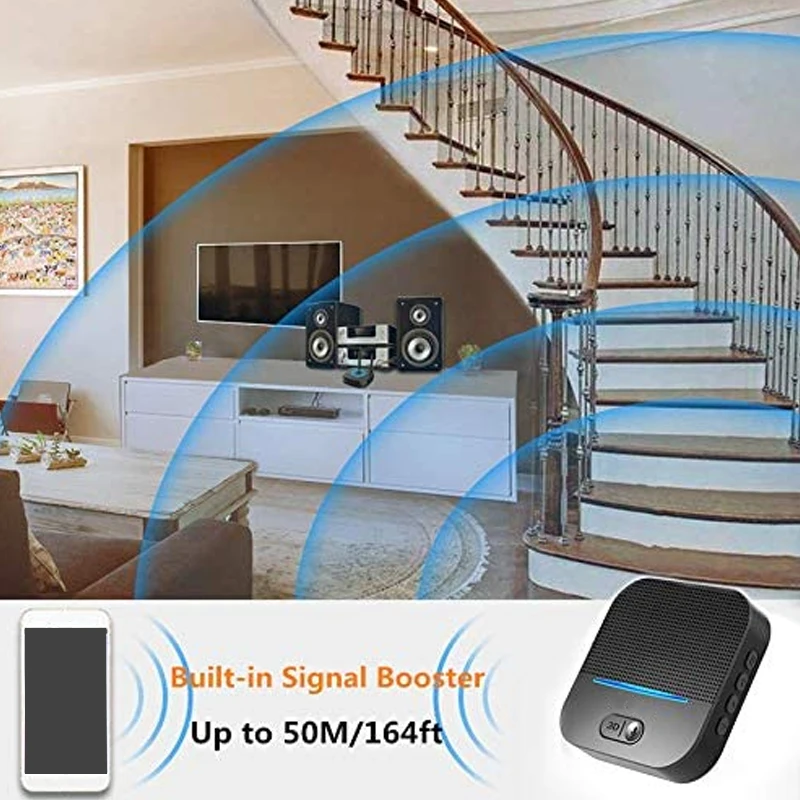 Hi-fi звук с 3D Аудио --- CSR Bluetooth 4,2 чип для обеспечения высокой точности передачи аудио сигнала Bluetooth для потоковой передачи музыки в те колонки или домашние стерео системы. Он также поддерживает aptx и aptX с низкой задержкой (aptx-LL). И 3D-звук может быть включен или выключен нажатием кнопки «3D». Зеленый светодиодный индикатор включается при включении в 3D-аудио.