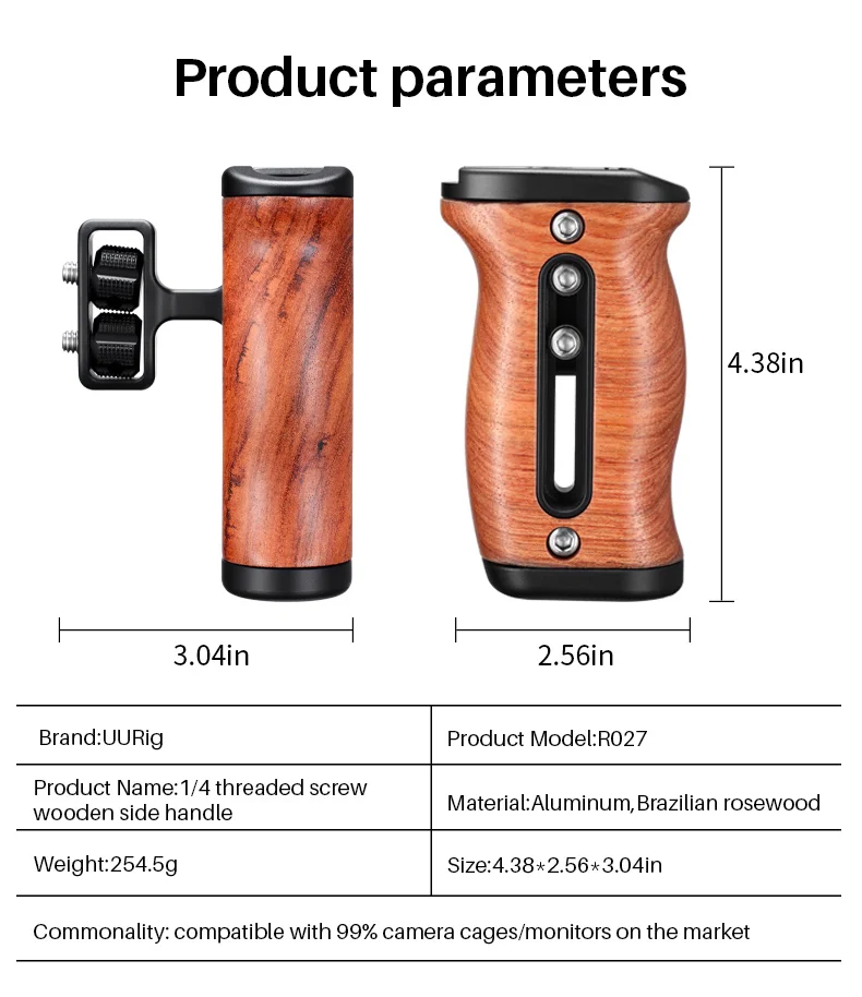 Отзывы о UURig Vlog Cage ручка с боковой резьбой левый и правый сменная деревянная для SLR