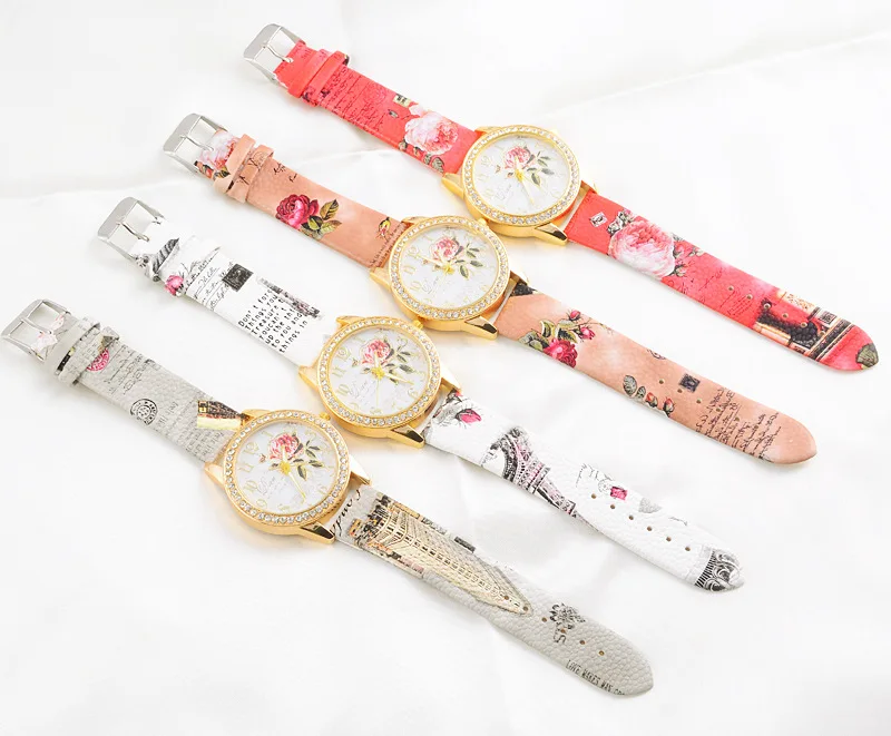 Отзывы о Модные женские часы для женщин цветочный принт года роскошные повседневные