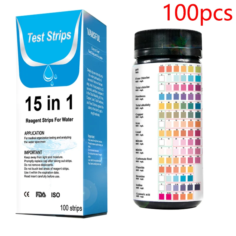 Отзывы о 100 шт. тестовые полоски 15 в 1 для воды Набор домашних тестовых лент питьевого