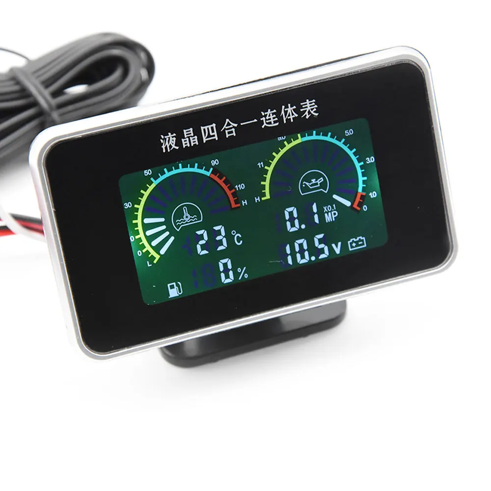 -Название: Автомобильный ЖК-дисплей 4 в 1 Манометр (температура воды/давление масла/топлива/датчики напряжения)