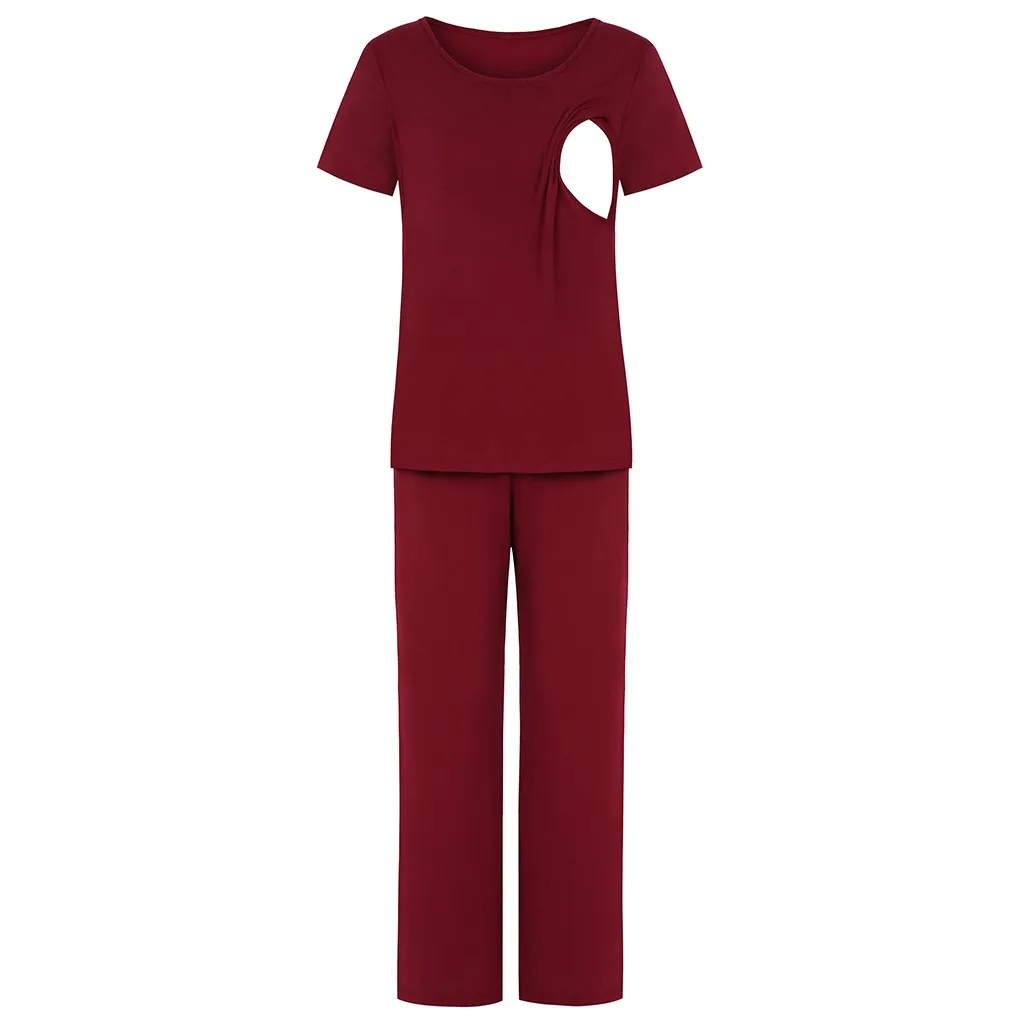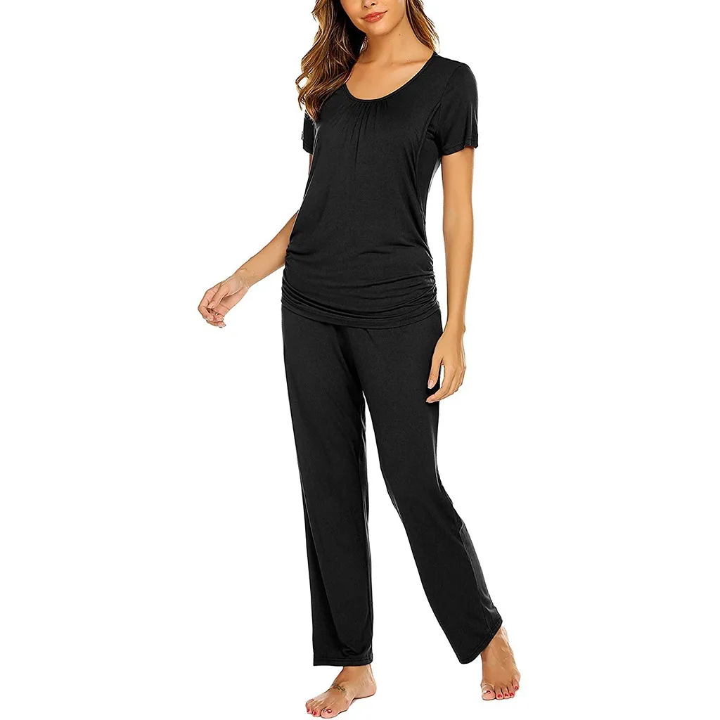 Женская футболка с короткими рукавами для беременных и кормящих детей, топы + штаны, пижамный комплект, костюм