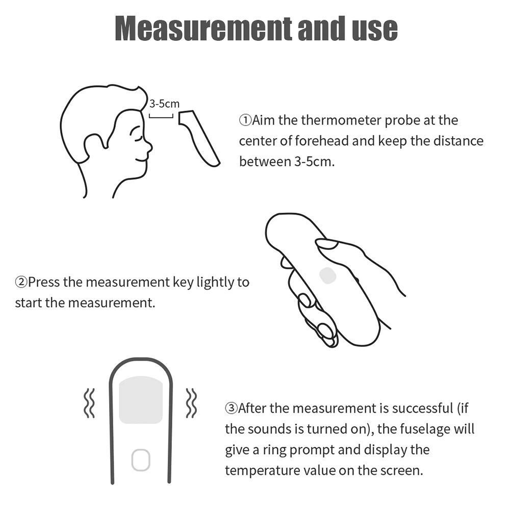 [Высокоточный инфракрасный термометр]: диапазон человеческого тела: 34 ℃-43 ℃; 3-5 см расстояние измерения, безопасный, чистый, стабильный и с надежной производительностью.