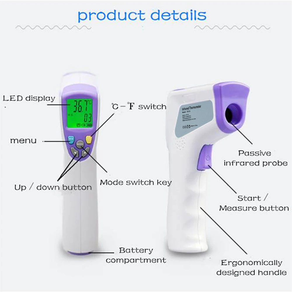 Высокое качество: Этот Бесконтактный инфракрасный термометр соответствует производственному стандарту ЕС и США.