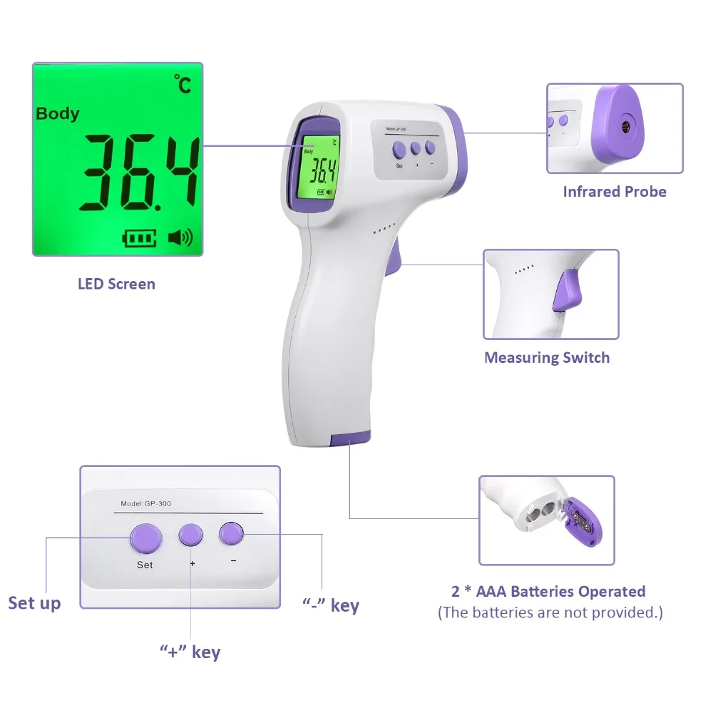 [Бесконтактный]: этот вид измерения температуры не похож на традиционный термометр, он не будет контактировать во время измерения температуры.