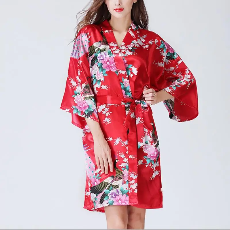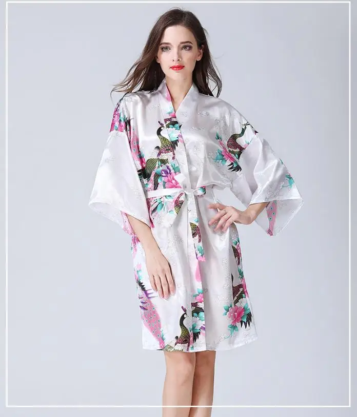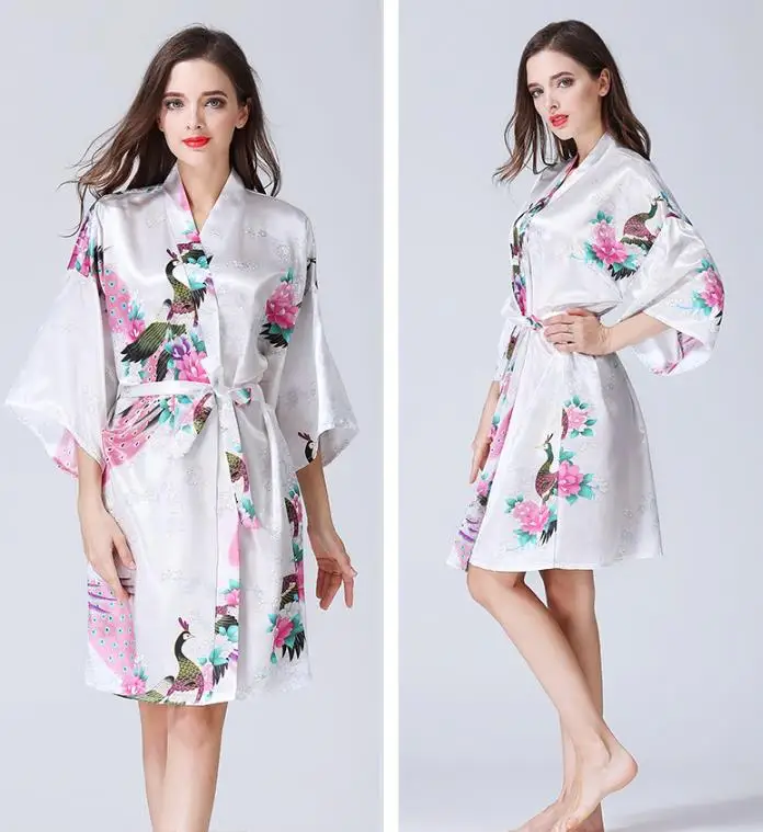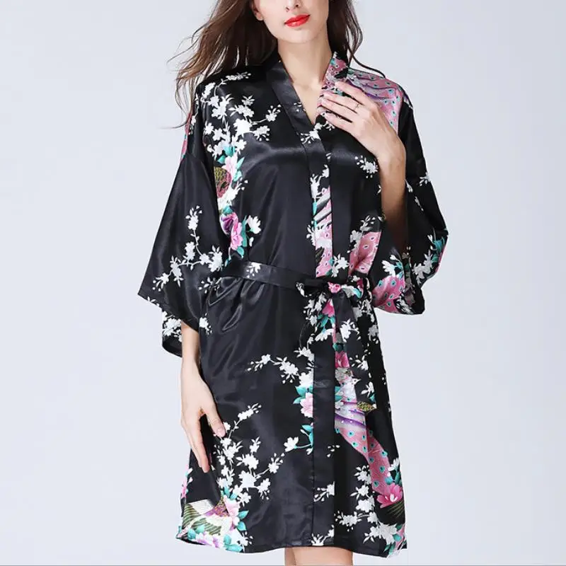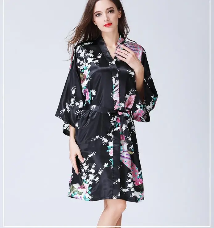 Отзывы о Robe Summer Fashion Sexy Silk Dress Like Pajamas Spring Cardigan Kimono Bathrobe Printing Nightdress Women | Женская одежда