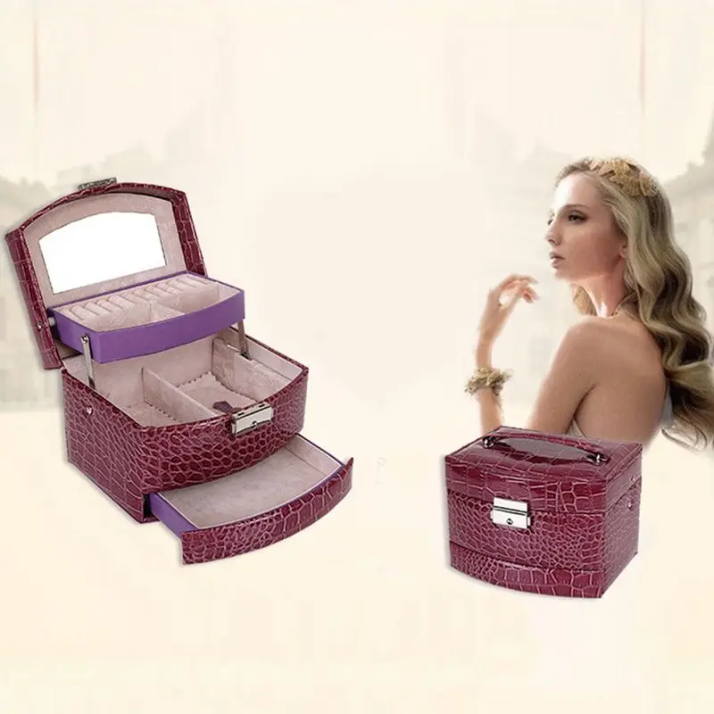 Эта коробка с крокодиловым узором, автоматическая коробка для ювелирных изделий, трехслойный чехол для хранения с косметическим зеркалом