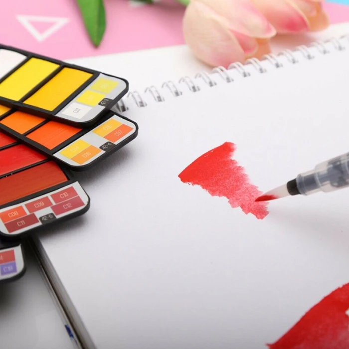 Отзывы о Портативный набор акварельных красок 18/25/33/42 цвета складной для рисования на