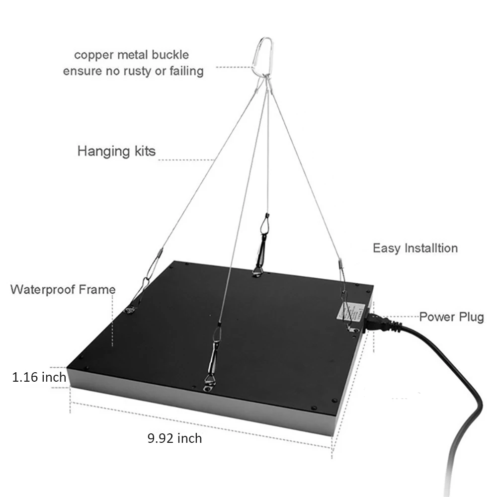2. Простота установки: подвесной комплект делает эту лампу для выращивания намного проще в сборке. Корпус из АБС-пластика, отличные чипы помогают вашим растениям расти лучше.