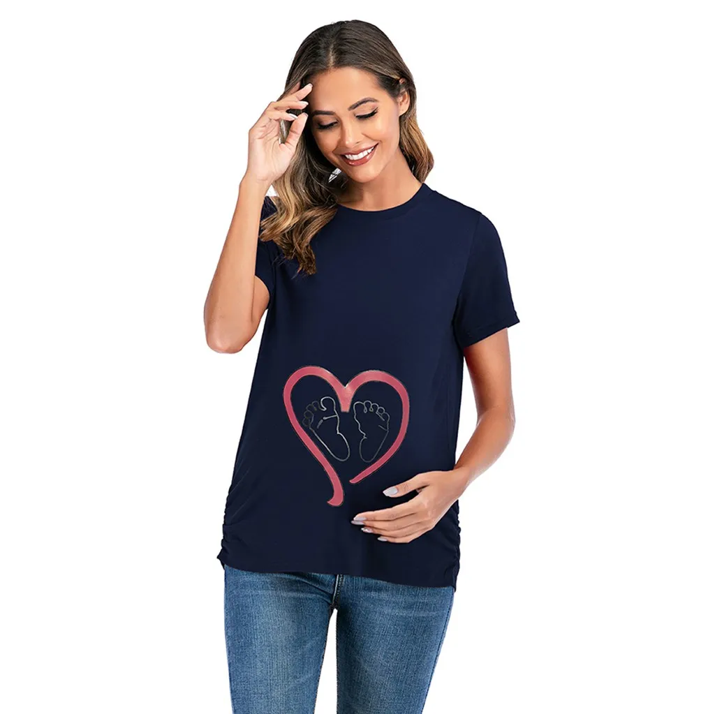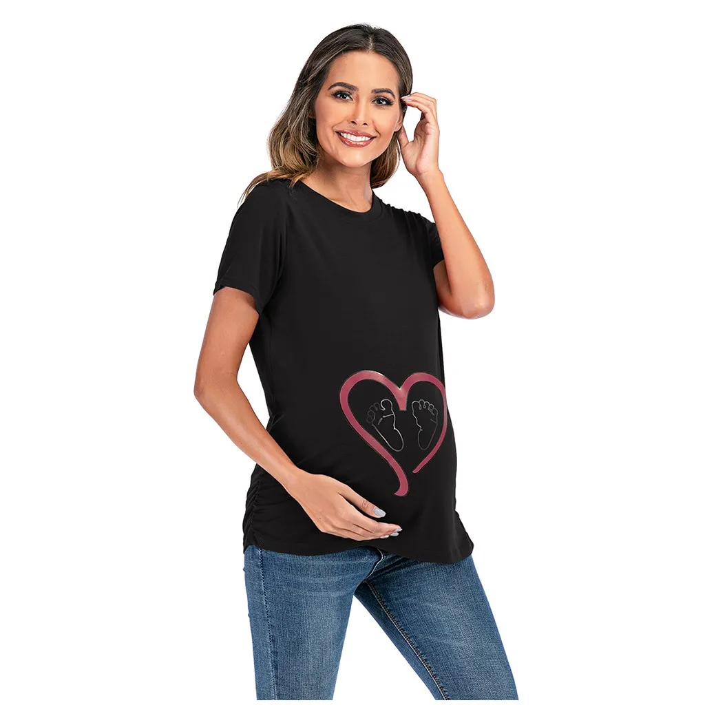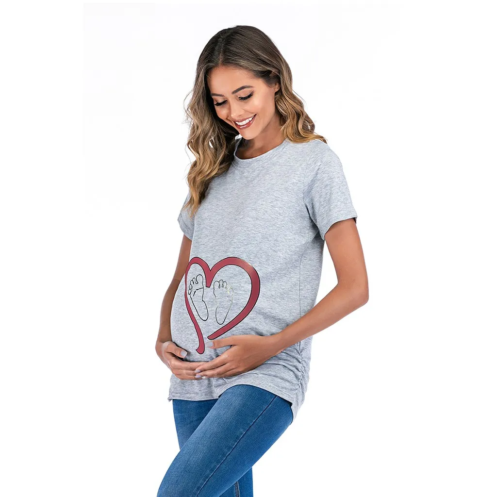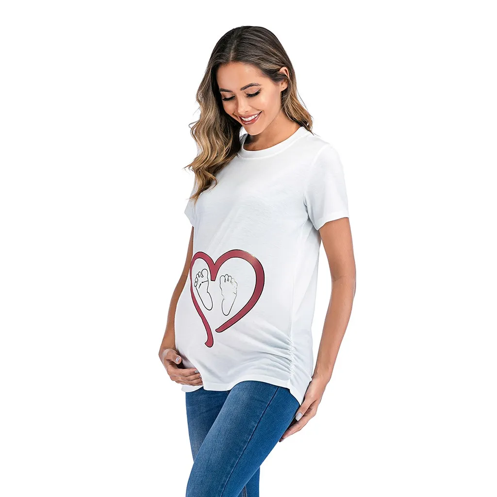 Женская Футболка для беременных с коротким рукавом и буквенным принтом