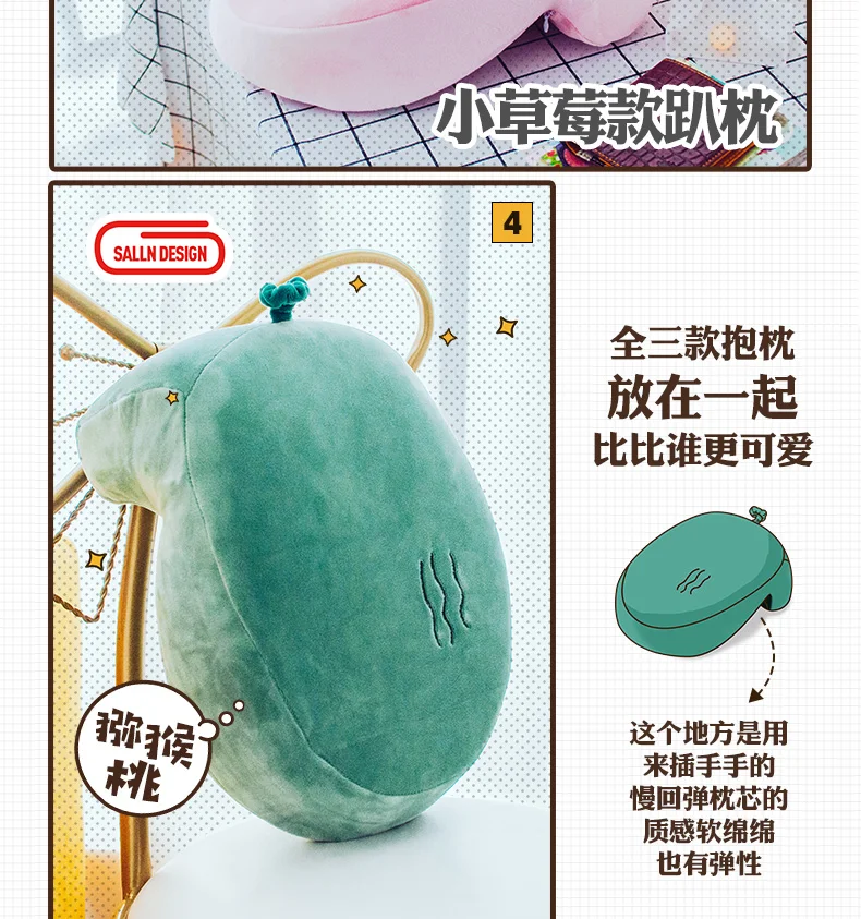【Название: фруктовая подушка 【Материал: короткий плюш 【Наполнитель: полипропиленовый хлопок 【Цвет 】: зеленый, желтый и розовый 【Размер 】: полная длина 32 см, полная ширина 24 см