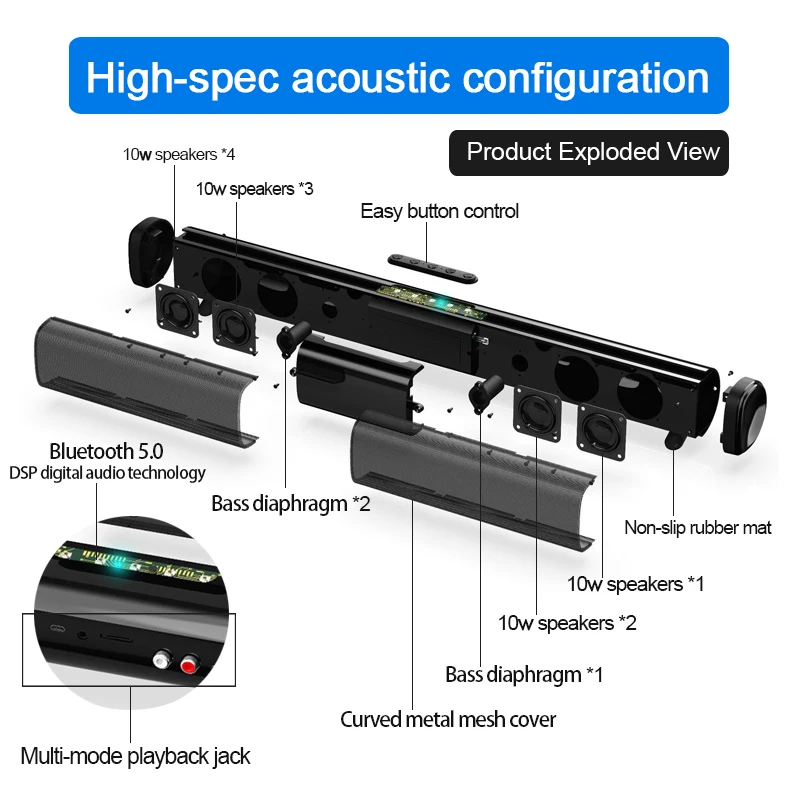 Звуковая панель 40 Вт TWS100W, патентная Новая беспроводная bluetooth-колонка Echo для ТВ, домашнего кинотеатра, бумбокс, музыкальный центр для ПК, кинотеатра, ТВ/TF / AUX