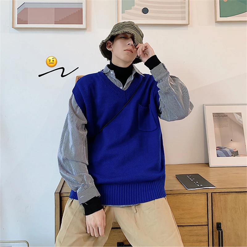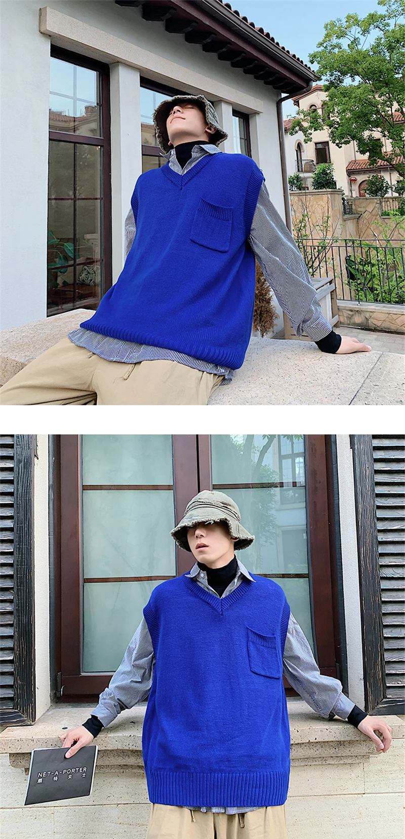 Отзывы о Мужской однотонный свитер без рукавов с V-образным вырезом и карманами | Мужская