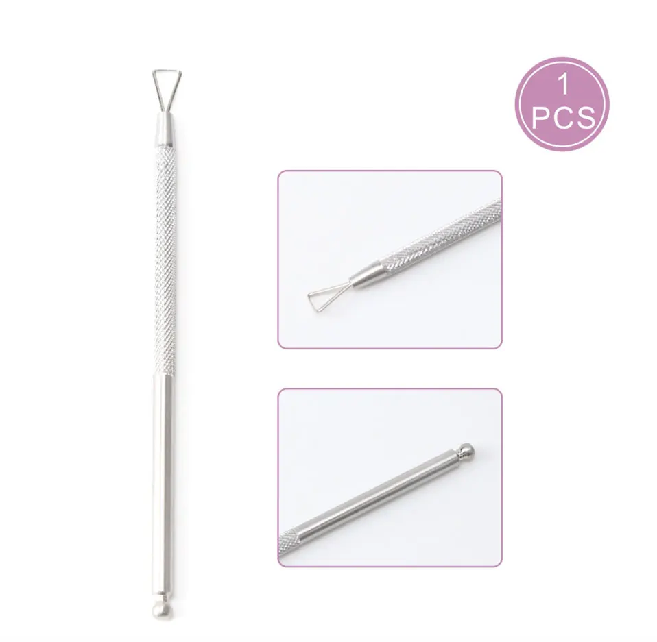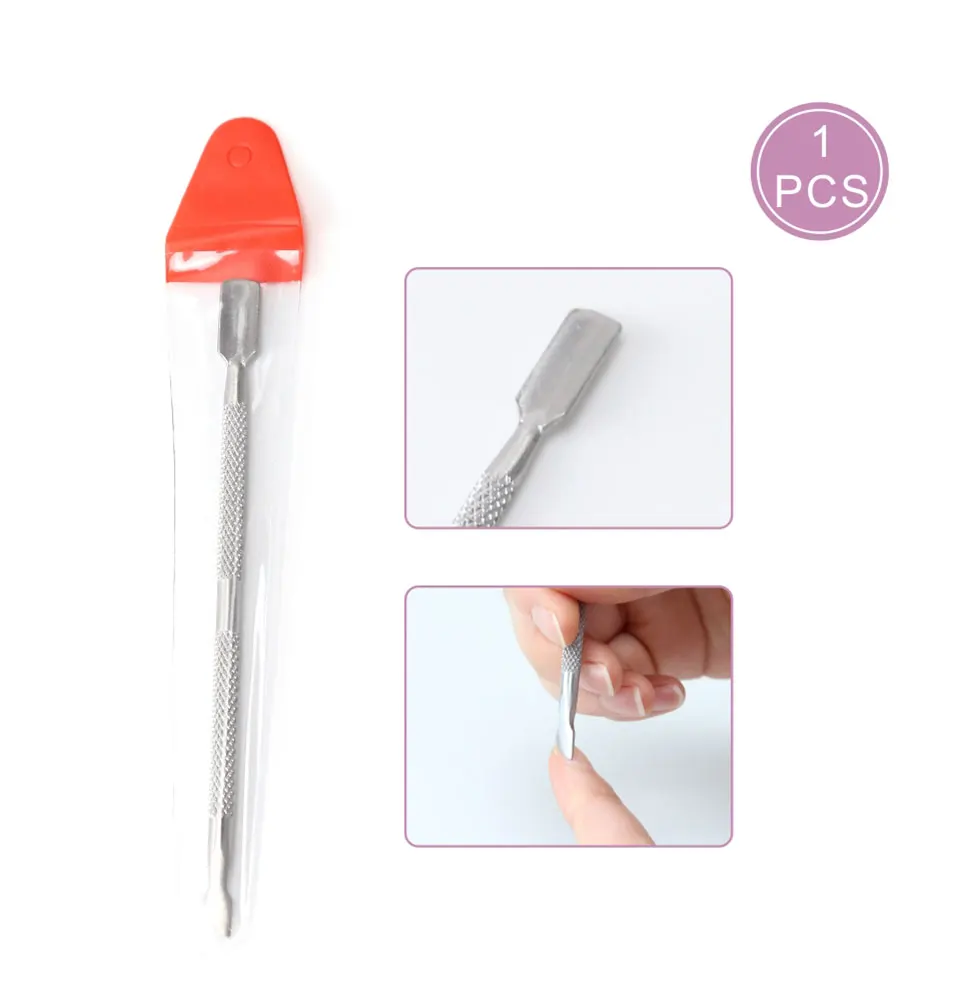 (1). С плоской головкой палочки, прижмите омертвевшую кожу пальца к основанию пальца, затем используйте ножницы для омертвевшей кожи, чтобы отрезать арку омертвевшей кожи. (2). Точку палочки можно использовать для украшения ногтей блестками, жемчугом и другими украшениями для ногтей.