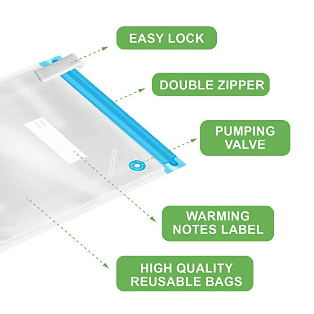 Всего 20 предметов, включая 15 рельефных пищевых пакетов в 3 размерах, с 1 воздушным насосом, 2 пластиковыми зажимами и 2 металлическими зажимами, использование металлического зажима сделает сумку более герметичной и устойчивой.