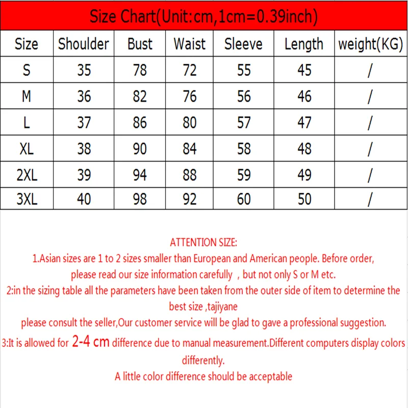 | Внимание Размер: 1. Азиатские размеры на 1-2 размера меньше европейских и американских. Перед заказом, Пожалуйста, внимательно прочитайте нашу информацию о размере, но не только S или M и т. д. 2: в таблице размеров все параметры были взяты с наружной стороны изделия для определения лучшего размера, tajiyane Пожалуйста, проконсультируйтесь с продавцом, Наша служба поддержки клиентов будет рада предложить профессиональное предложение. 3: допускается для2-4 смРазница из-за ручного измерения. Разные компьютеры отображают цвета по-разному. Возможна небольшая разница в цвете |