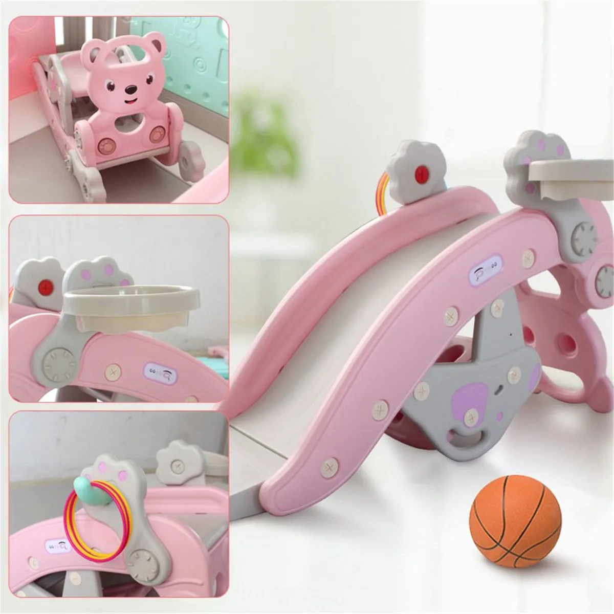 ● Баскетбольный обруч: баскетбольный обруч идеально подходит для вашего маленького спортсмена, чтобы играть в баскетбол. Если вы не хотите его использовать, вы можете легко его удалить.