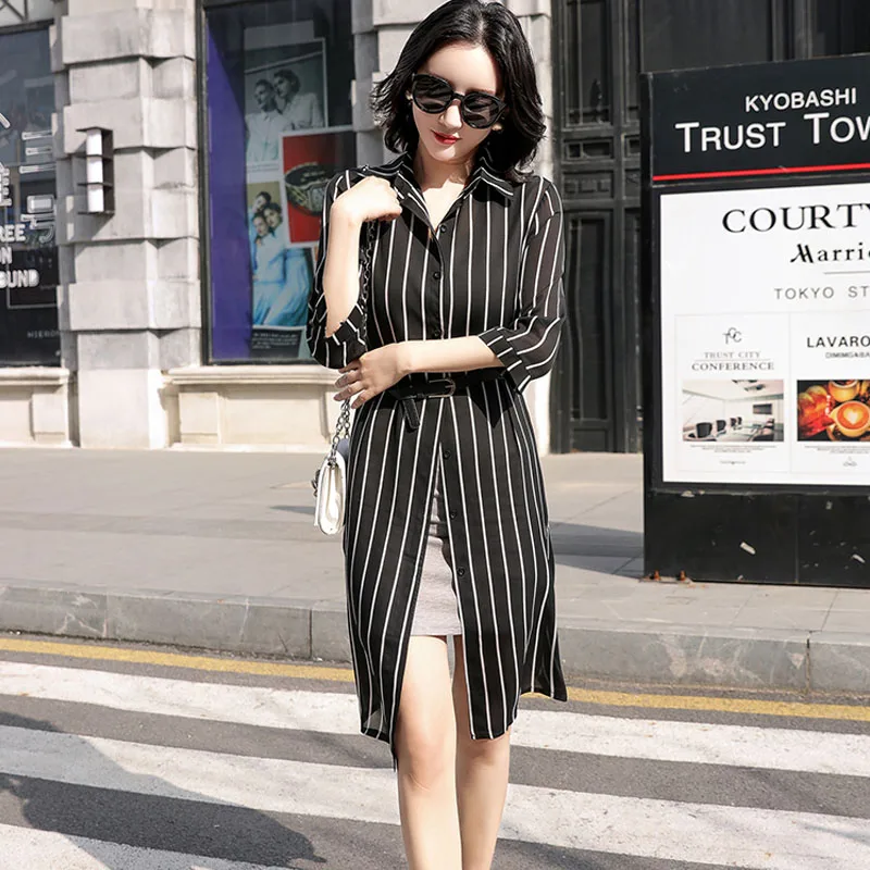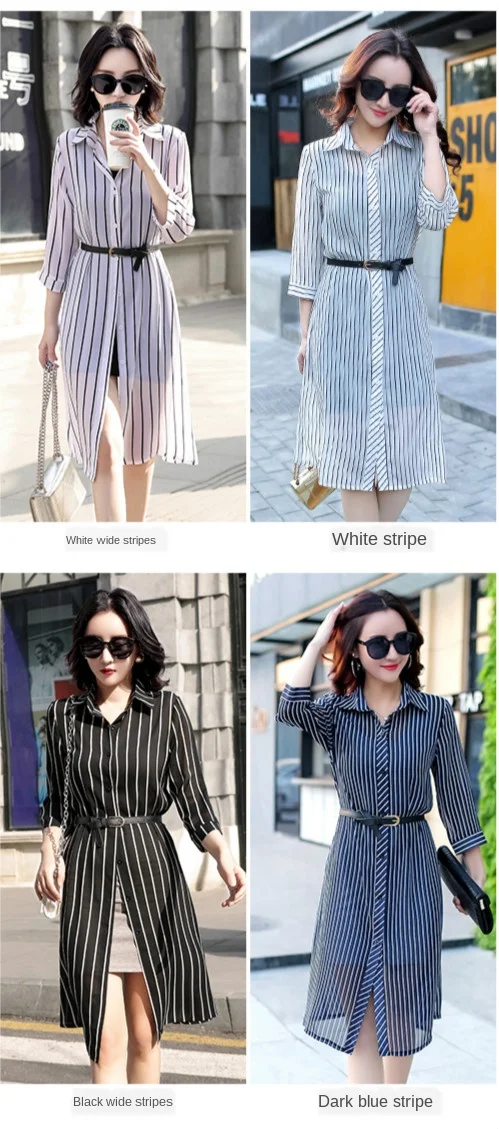 Отзывы о Женская шифоновая блузка в полоску Длинная пляжная Свободная рубашка клетку с