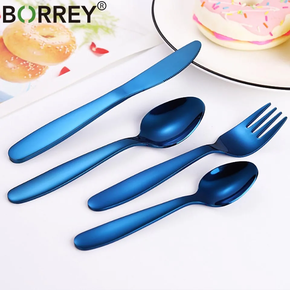 BORREY 4Pcs Kid Cutlery Stainless Steel Flatware Set Black Rose Gold Western Food Cutlery Cutipol Kids Tableware Dinnerware Set