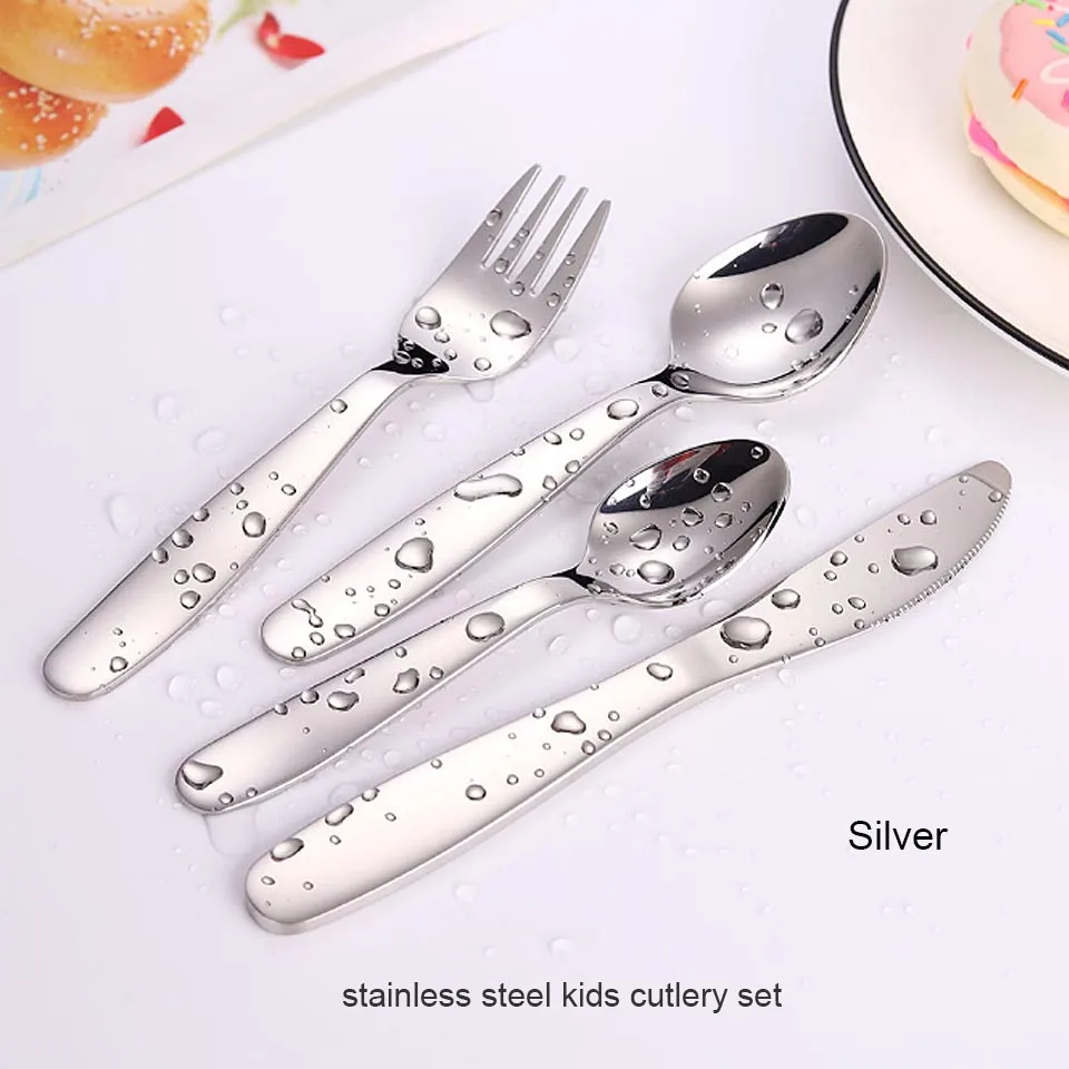 Отзывы о BORREY 4Pcs Kid Cutlery Stainless Steel Flatware Set Black Rose Gold Western Food Cutipol Kids Tableware Dinnerware | Дом и сад