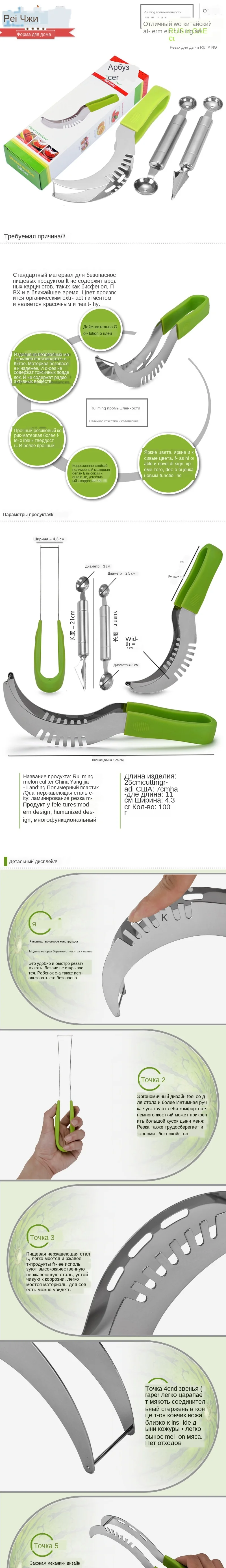 Отзывы о Креативные кухонные гаджеты нож для резки арбуза с двойной головкой