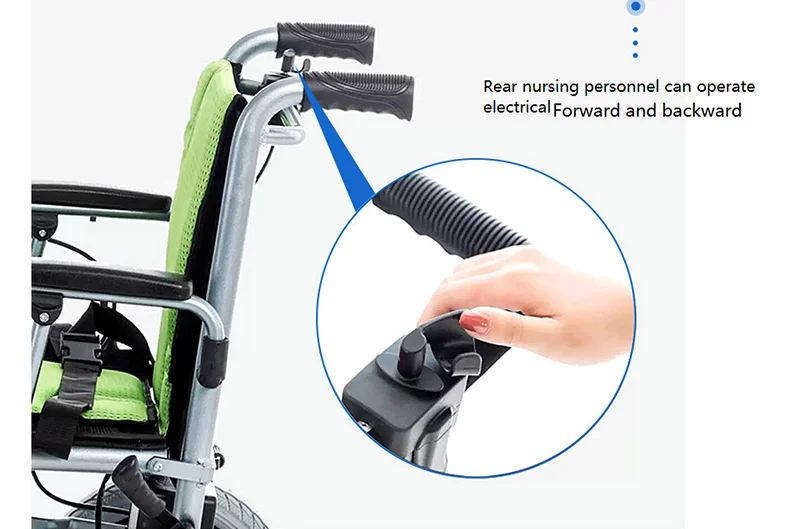 -Версия с двойным управлением также позволяет ухаживающему за ребенком управлять инвалидной коляской сзади. Это особенно полезно для тех, кто заботится о себе, которые также являются старыми, и не имеют силы, чтобы толкать пациента на большие расстояния или вверх по наклону