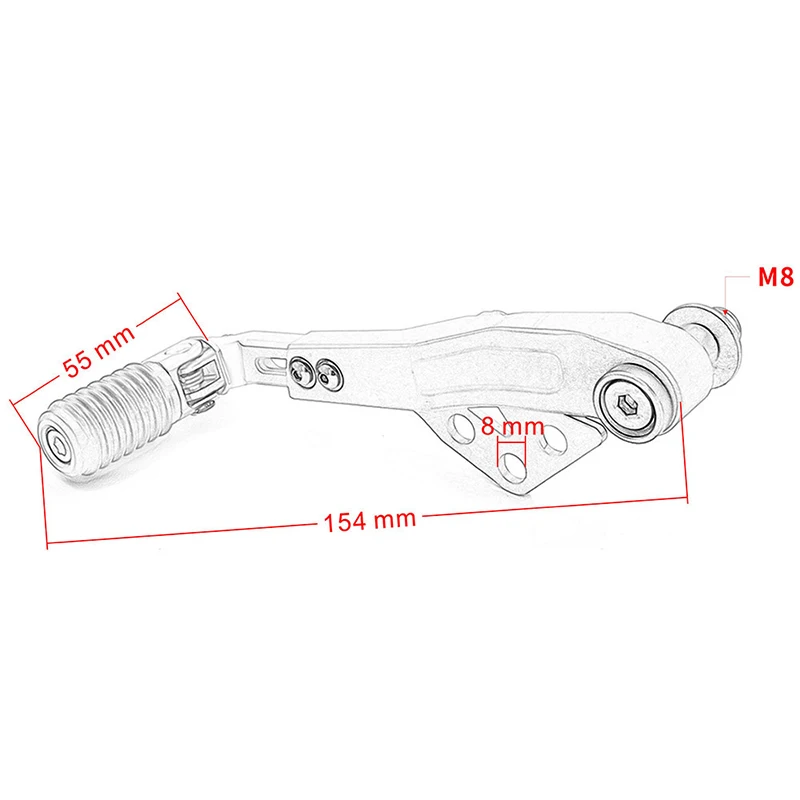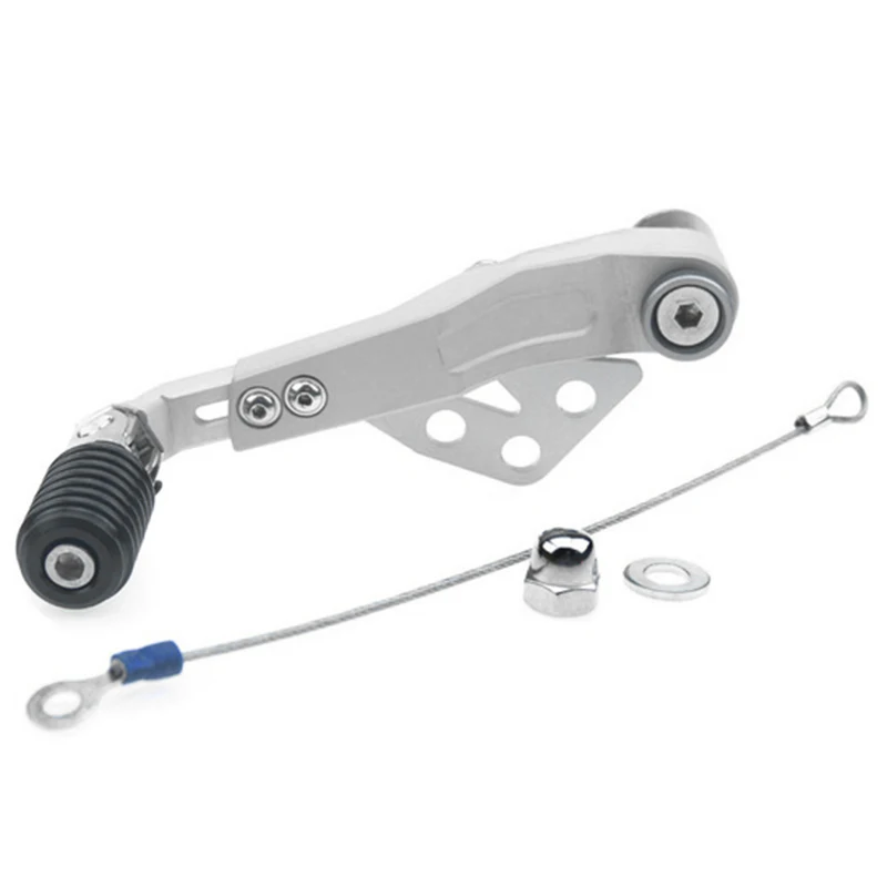 Носок можно складывать, это позволит избежать поломки при столкновении рычага переключения и тротуара.Колышки для пальцев могут регулироваться в зависимости от вашего заказа