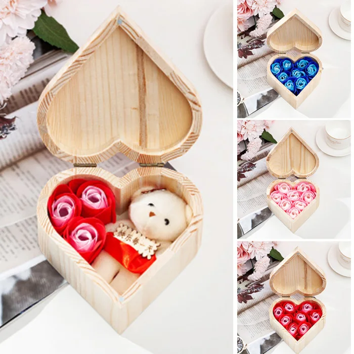 Отзывы о Деревянная коробка в форме сердца мыло цветок шкатулка ручной работы