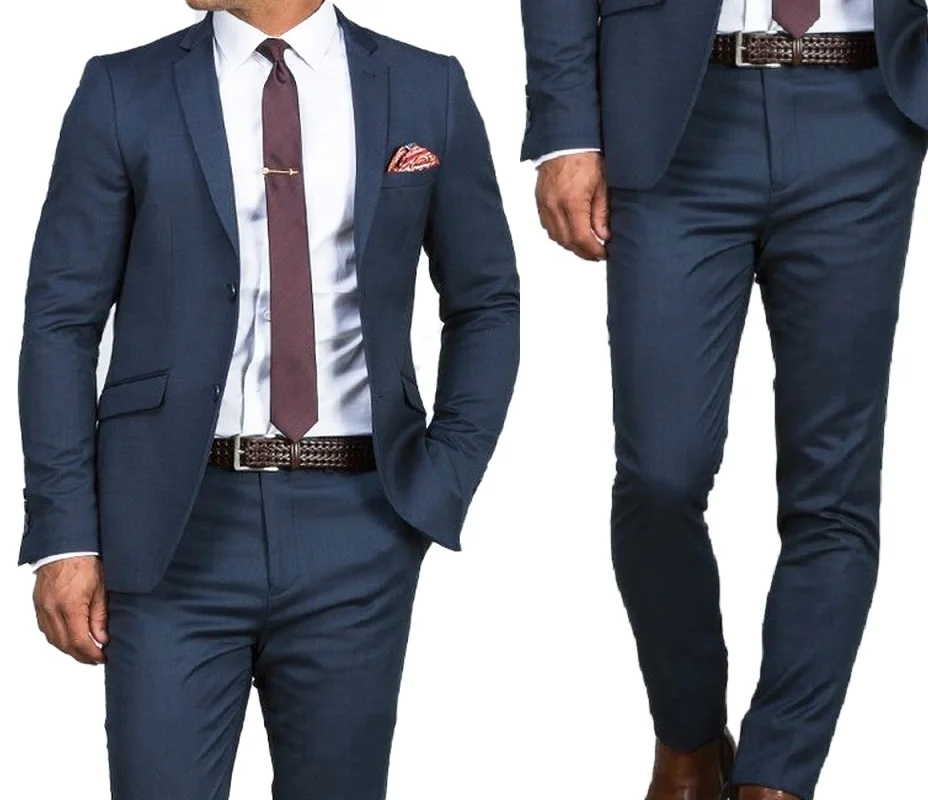 Отзывы о Синие мужские костюмы приталенные деловые с одной грудью смокинг жениха мужской