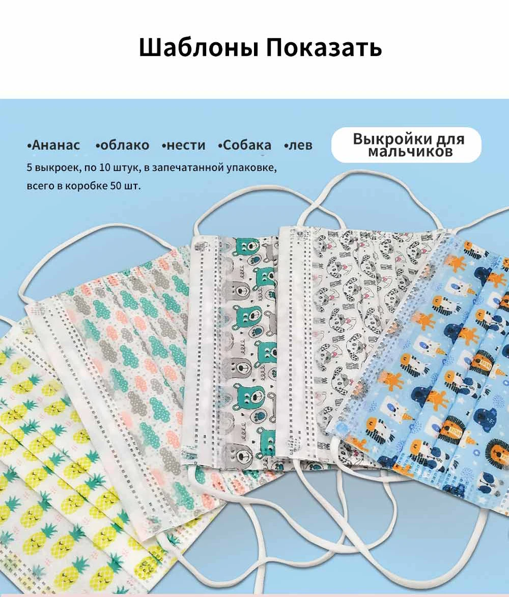 Отзывы о MERRYLIFE 50 шт. одноразовая детская маска для лица с узором детей трехслойная