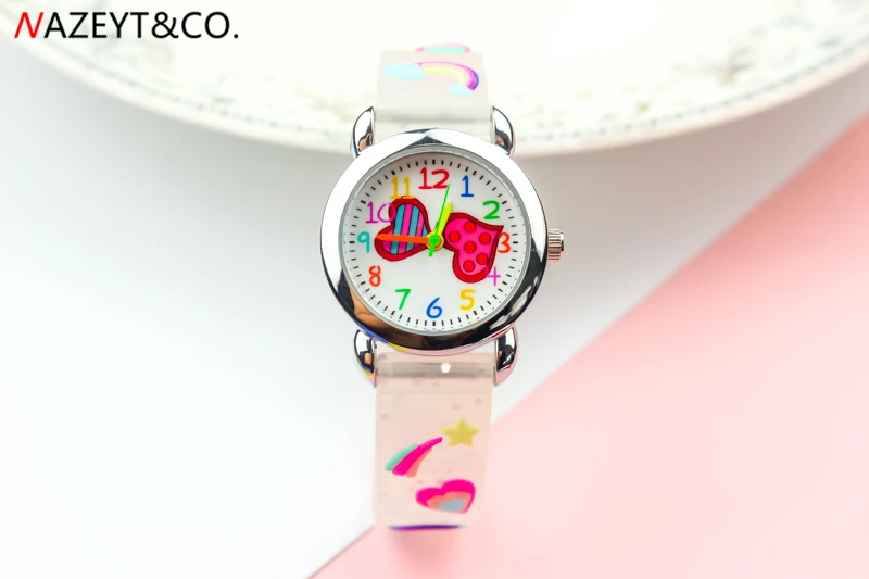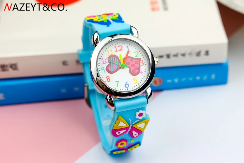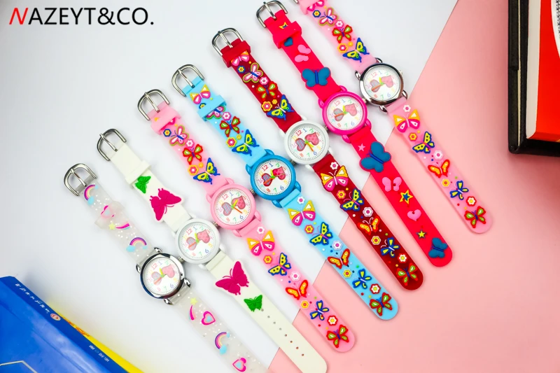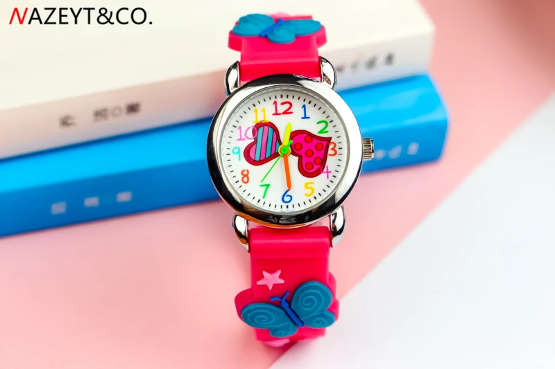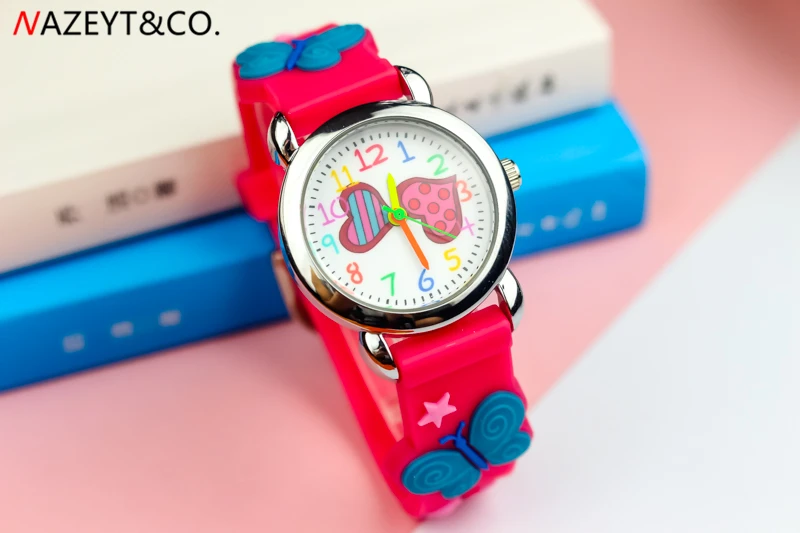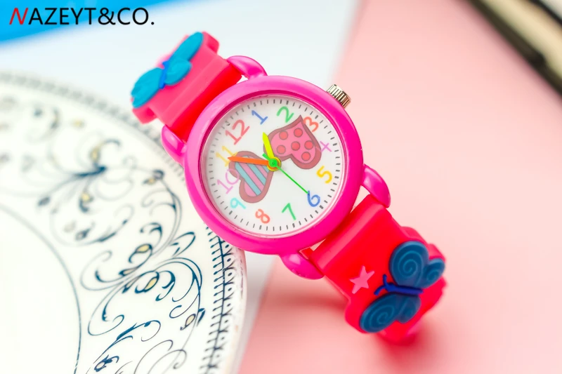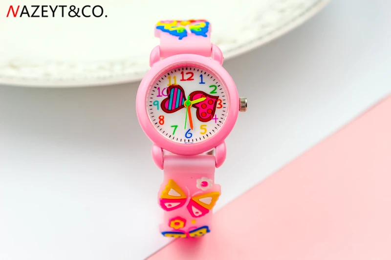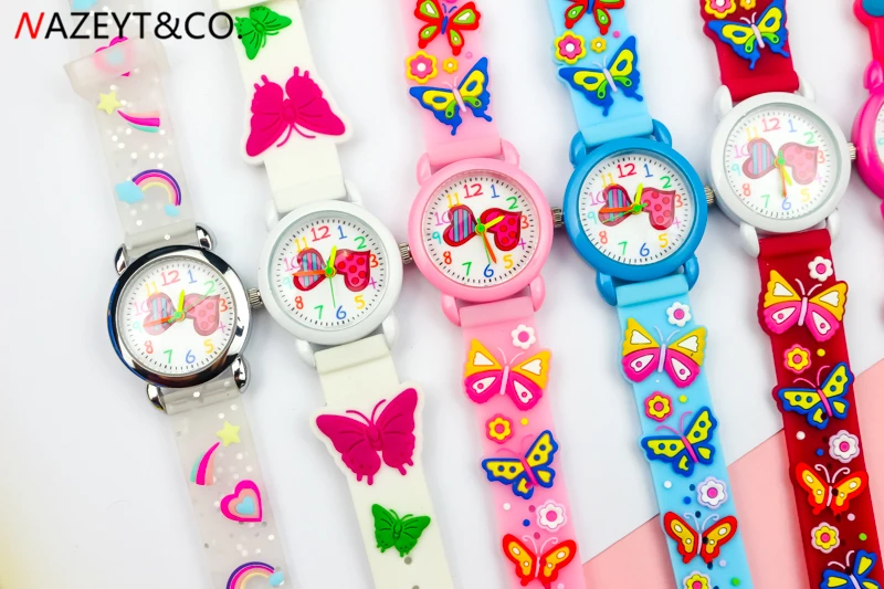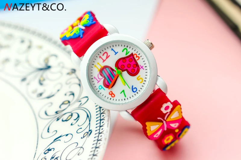 Акция; Новое поступление; Детские Кварцевые часы для маленьких девочек и мальчиков с милым циферблатом в виде сердца; Силиконовые часы с ремешком в виде бабочки