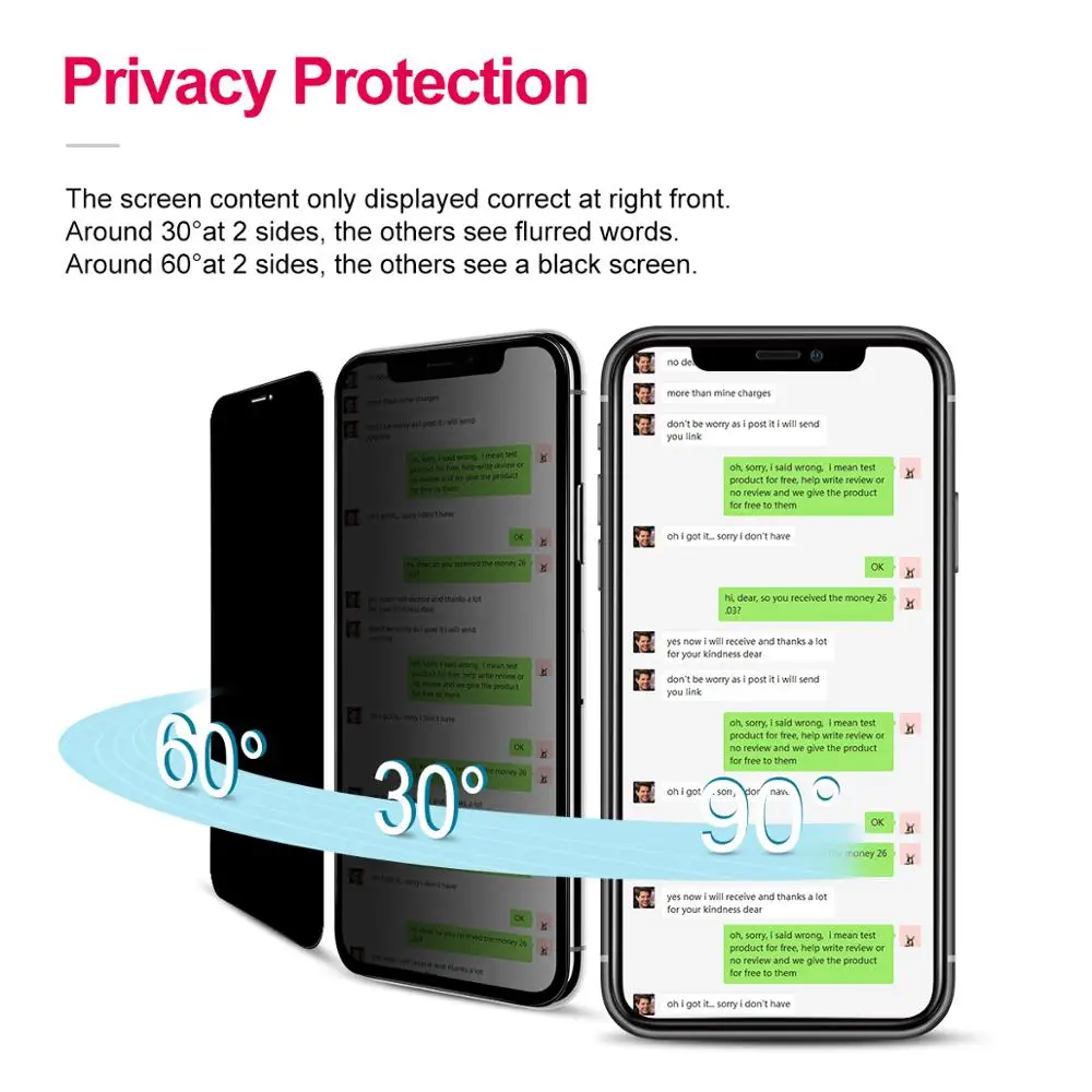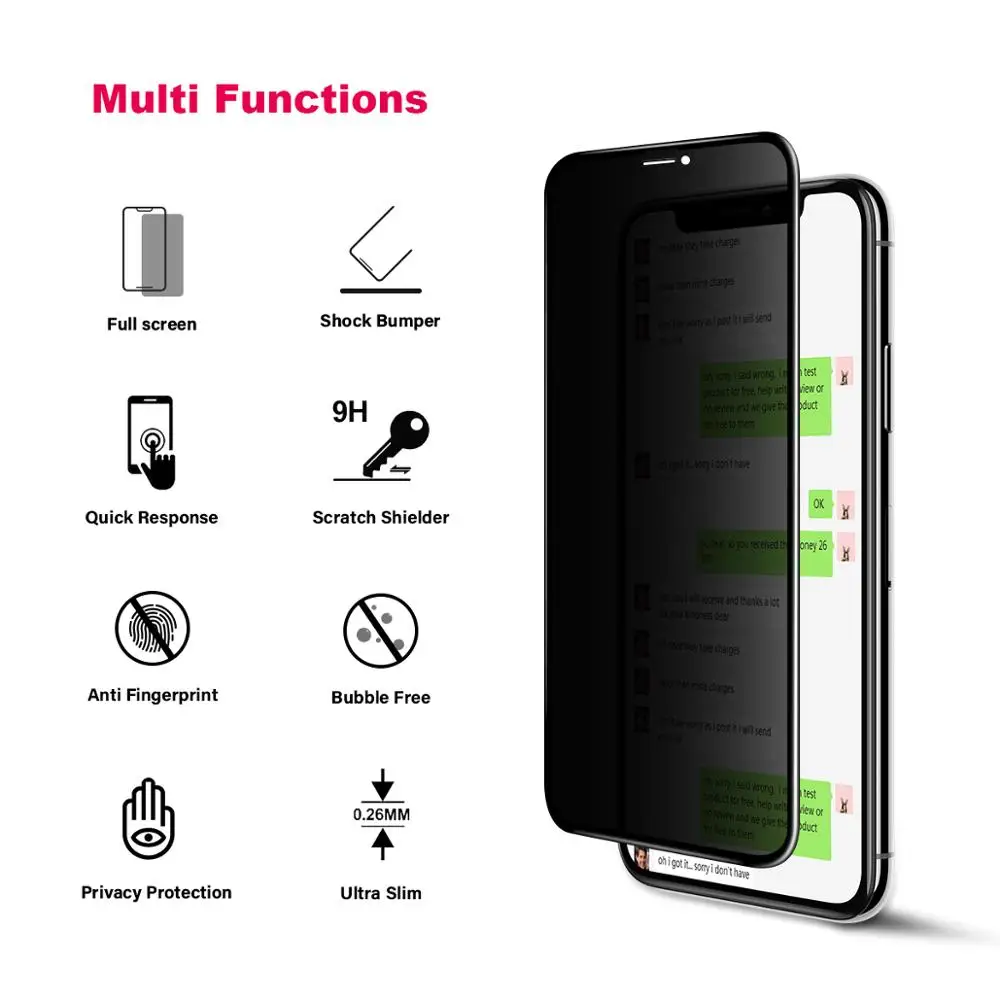 Тип пленки:Передняя пленка, 2.5D HD tИмператорное стекло,Защита экрана с полным покрытием, 180 ° Анти-Подглядывание