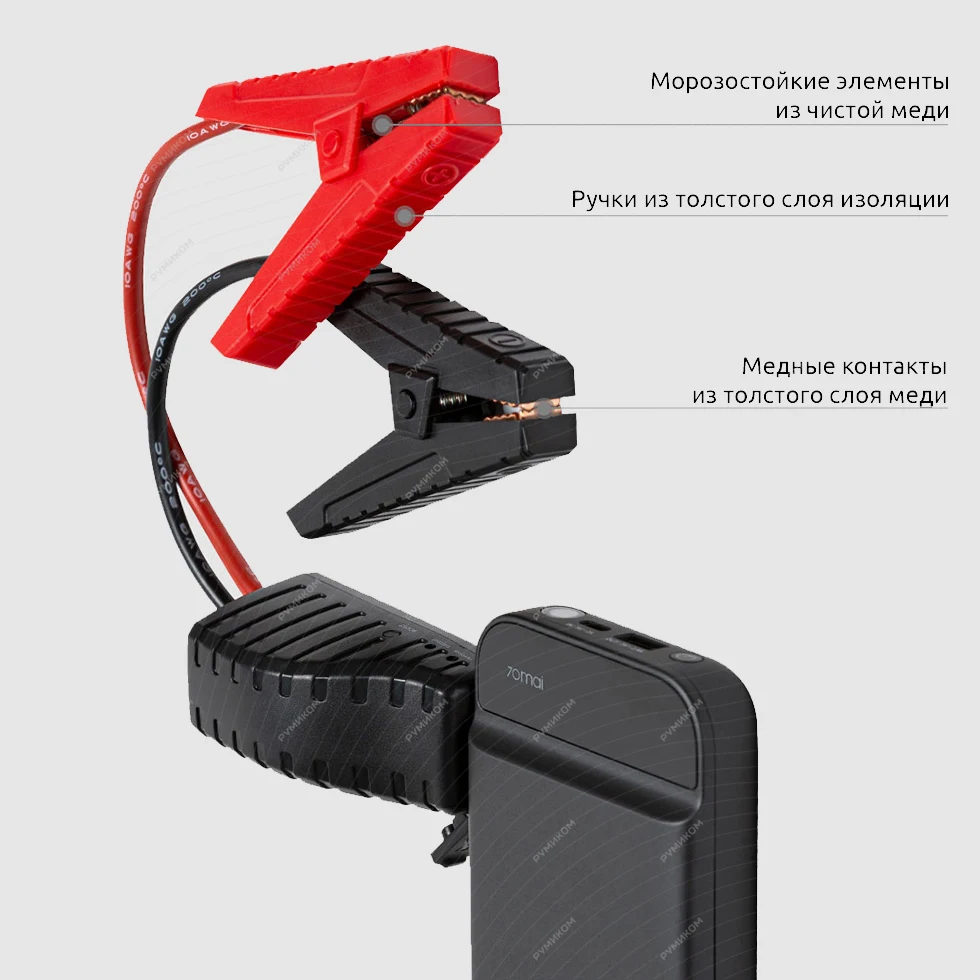 Когда у аккумулятора не хватает напряжения, автомобиль запустить не получится. В таком случае можно достать пуско-зарядное устройство 70Mai и подключить его клеммы к полюсам аккумулятора для помощи в запуске двигателя. При этом использование устройства предельно простое, так что даже новичок справится с ним без труда.