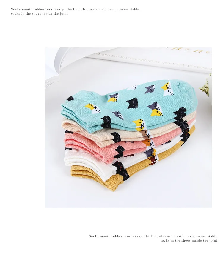 Отзывы о Женские хлопковые носки Kawaii Cat модные короткие Разноцветные Повседневные Носки с