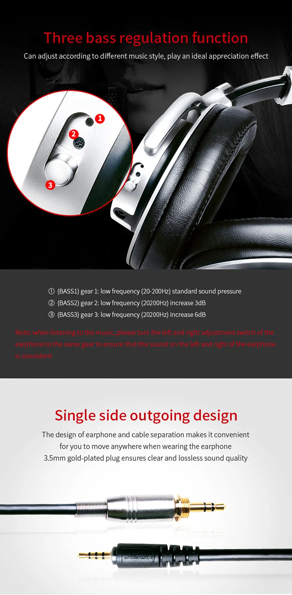 • Разработан с 3-уровневой функцией регулировки низких частот, пользователь может регулировать басы в соответствии с музыкальным стилем для обеспечения наилучшей производительности