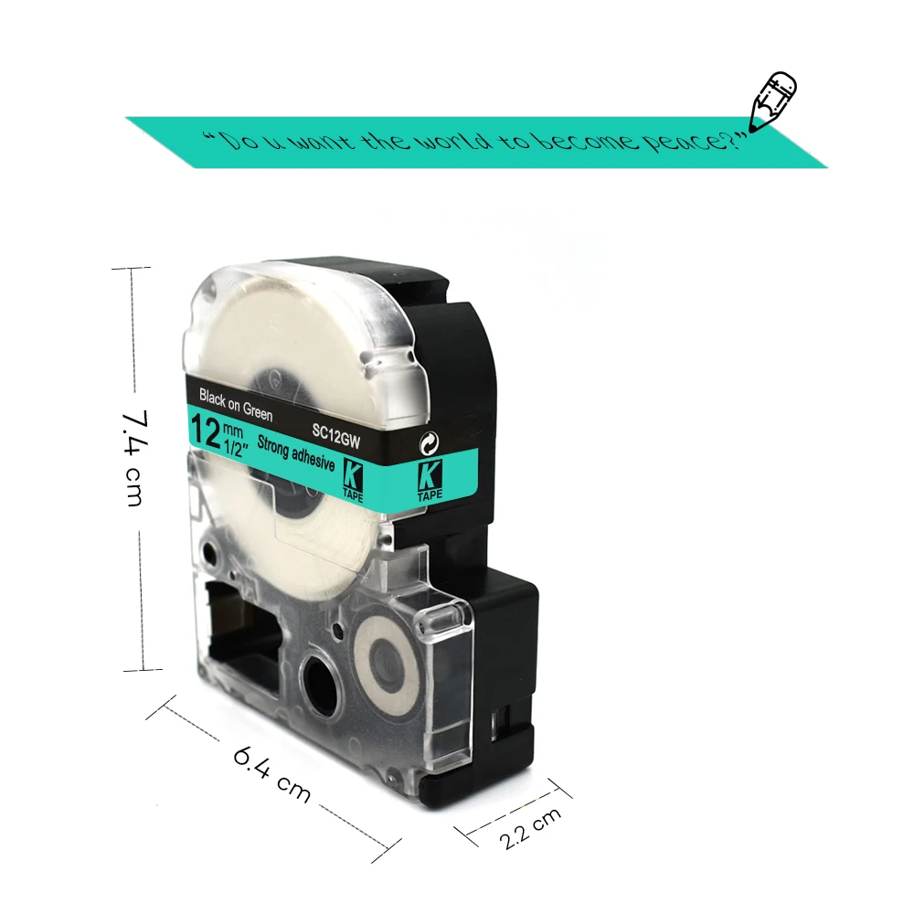 Отзывы о Лента для этикеток Epson 12 мм черная на зеленом SC12GW LC4GBW лента лент KingJim label maker LW-300