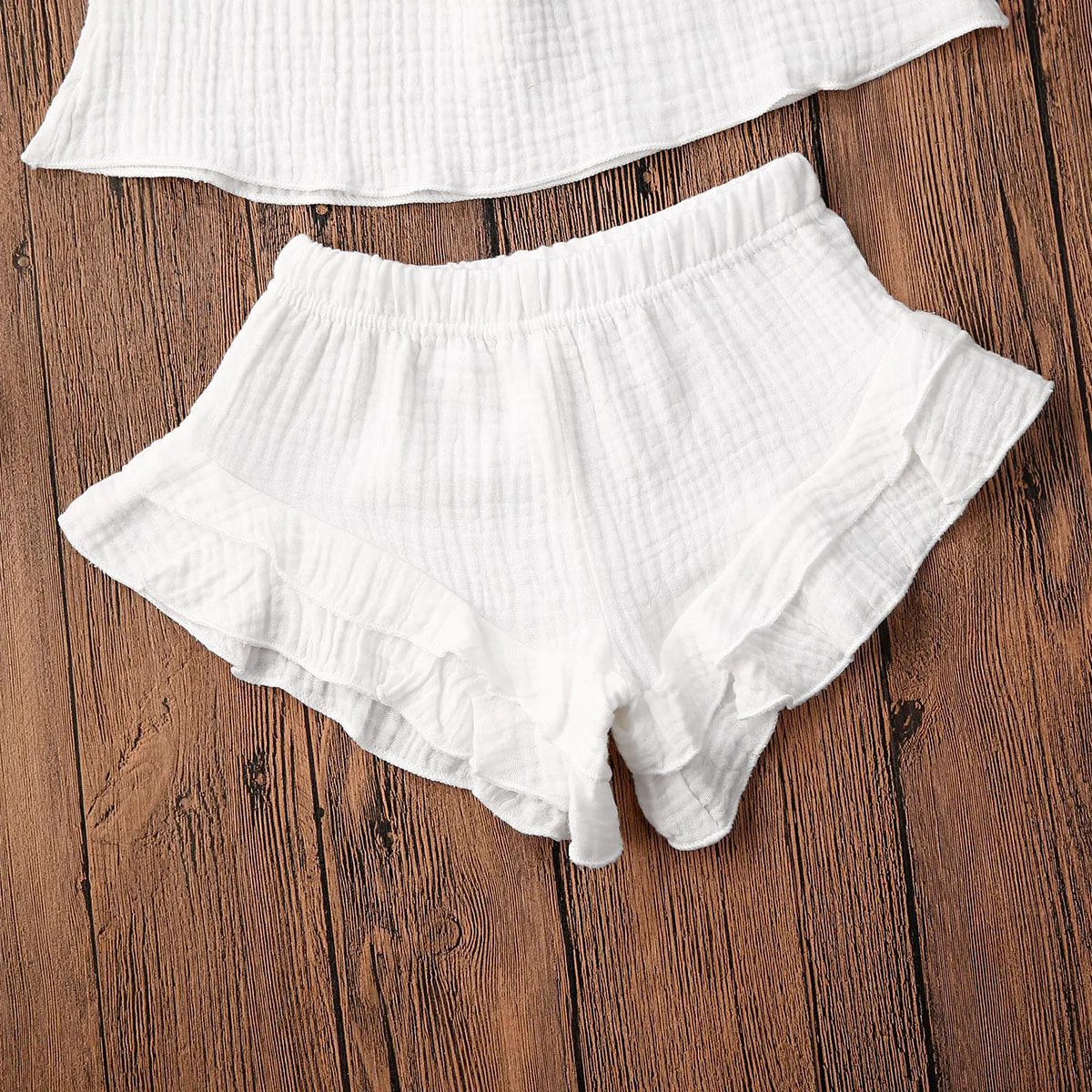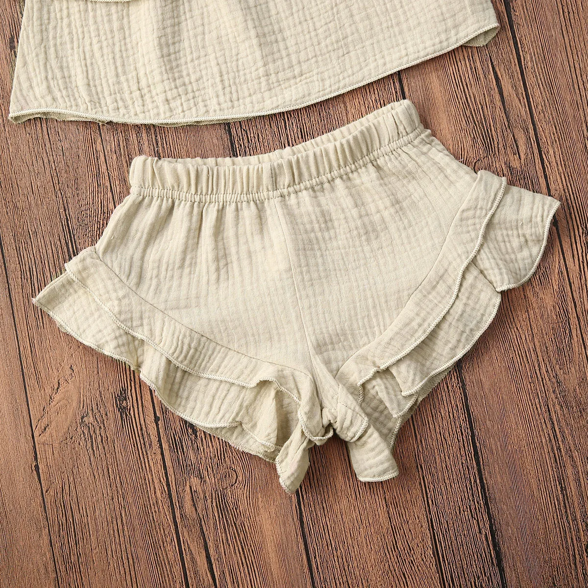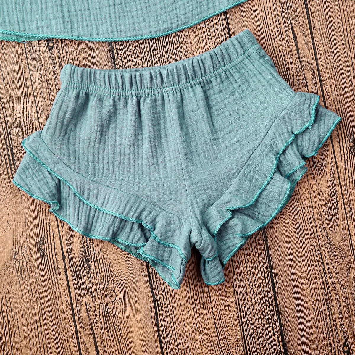 Отзывы о Топ и шорты для девочек однотонные с оборками без рукавов ремнем 6 цветов От 1 до 5