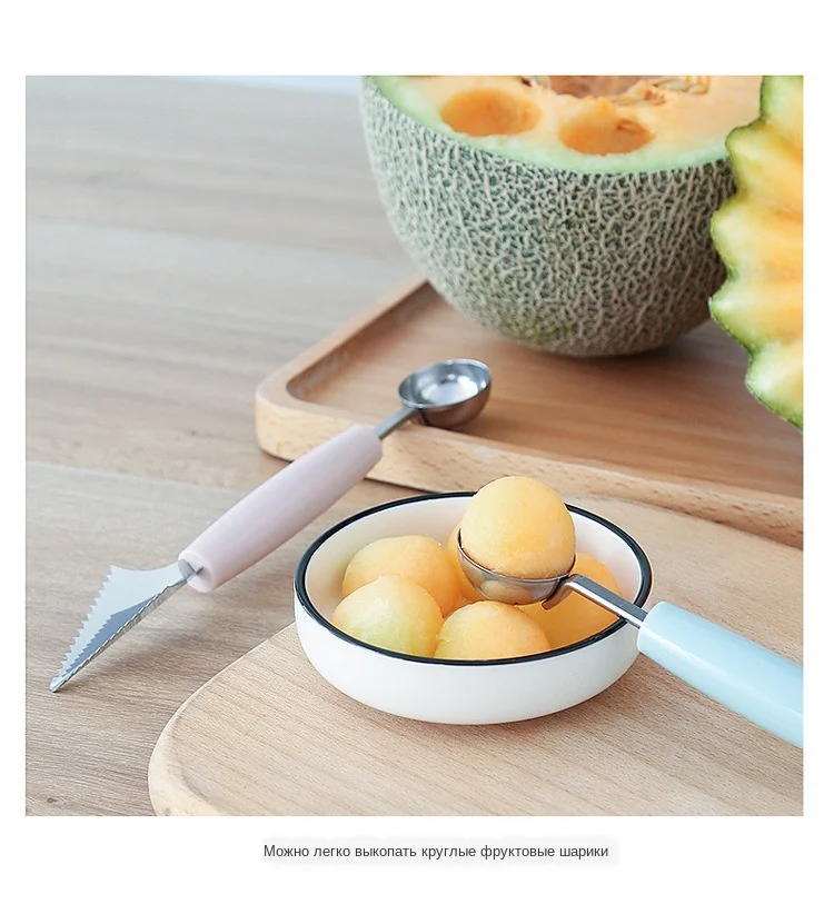 Отзывы о Скандинавский цветной двухсторонний фруктовый мяч из нержавеющей стали копатка