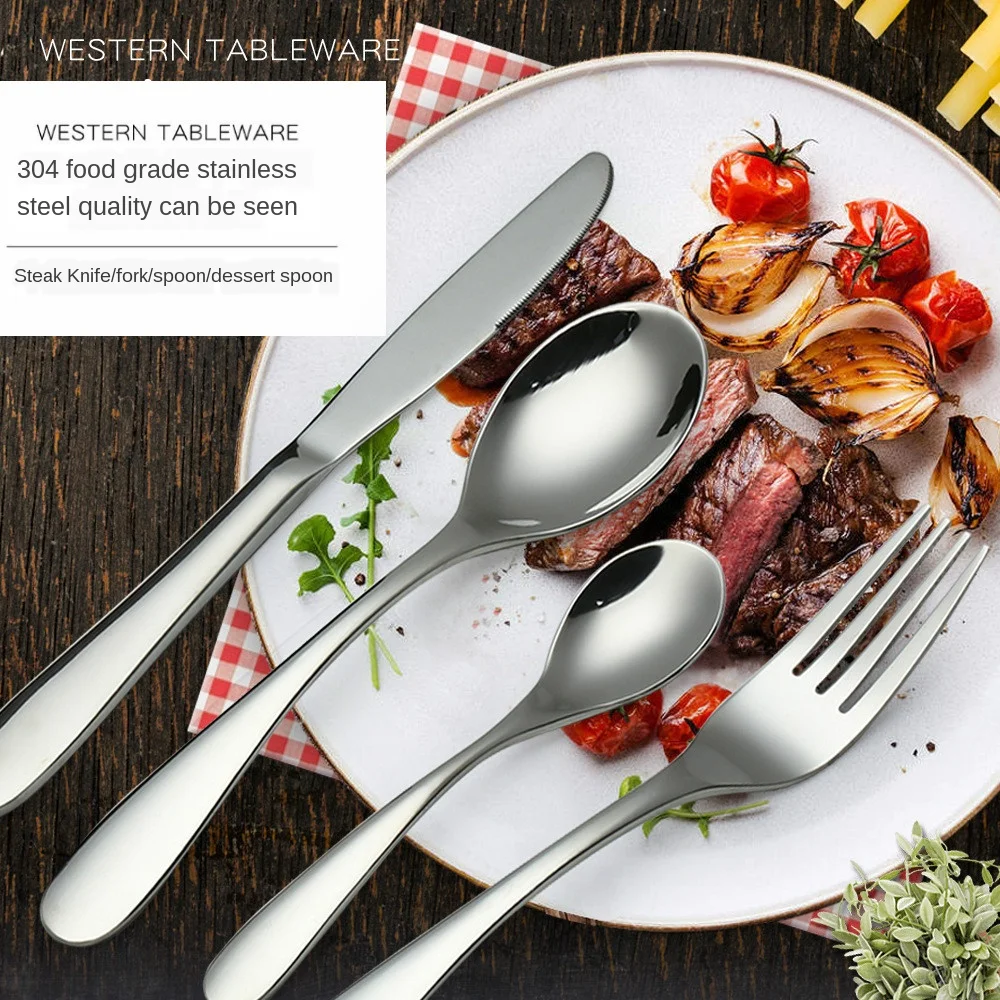 304 нержавеющая сталь столовая вилка ложка набор ножей Западный набор посуды 304 нержавеющая сталь Западный нож, вилка и ложка