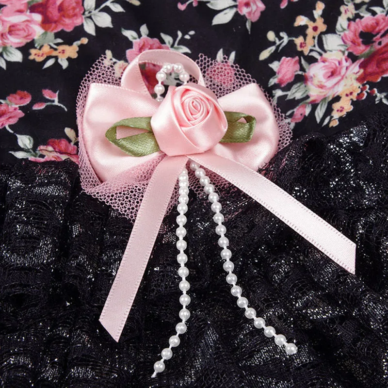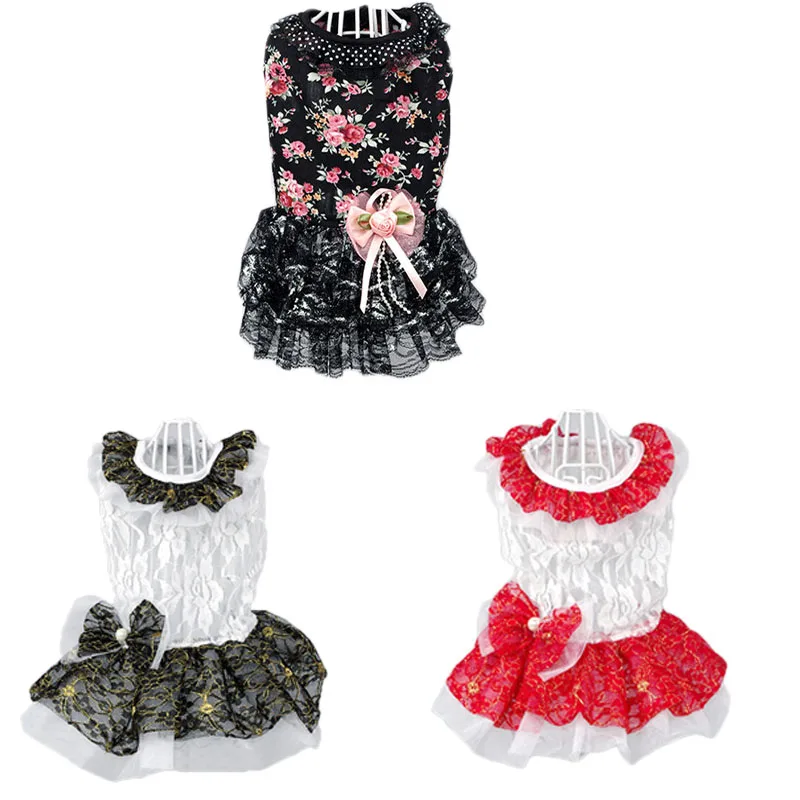 Черное платье с цветочным рисунком кружевная рубашка-пачка принцессы, одежда для девочек, летнее худи, жилет, юбка для маленьких средних собак, пудель, XS,S,M,L,XL