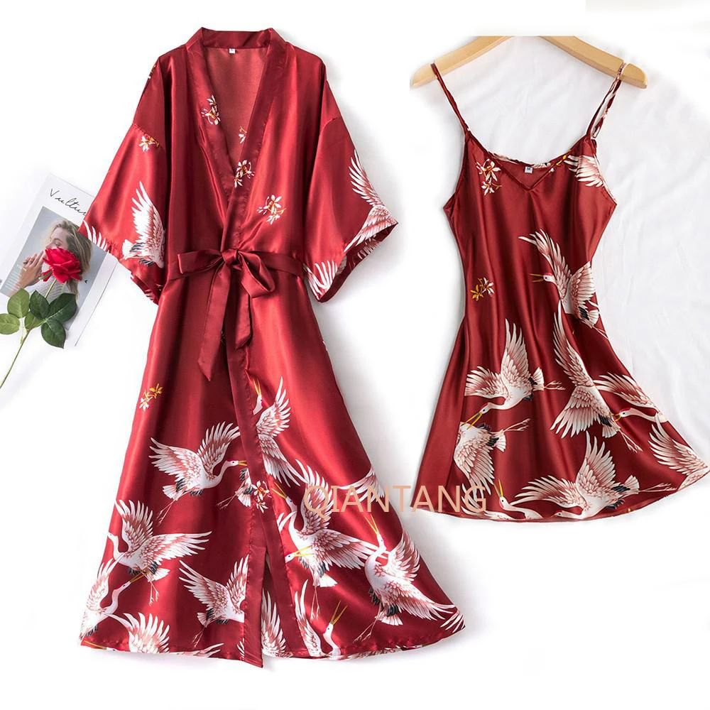 Отзывы о Sexy Nightwear Gown Set Women 2PC Pyjama V-Neck Pajamas Silky Sleepwear Spring Lady Sleep Suit Robe Wear Home Negligee Homewear | Женская