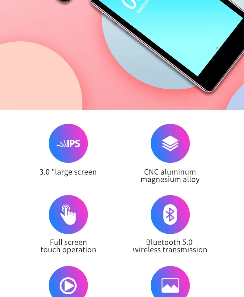 Отзывы о Новый металлический MP4-плеер Bluetooth 5 0 встроенный динамик 3 дюйма сенсорный экран